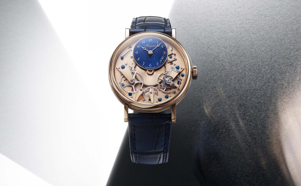 Ra đời nhân dịp kỷ niệm 250 năm, Tradition 7035 Seconde Rétrograde tôn vinh di sản cơ khí Breguet bằng vẻ đẹp được phơi bày – từ mặt số lộ máy cho đến kim giây hồi ngược độc đáo. Vỏ vàng hồng 37mm được chế tác từ hợp kim riêng của thương hiệu, kết hợp cùng mặt số guilloché phủ men grand feu xanh ngọc với họa tiết Quai de l’Horloge – biểu tượng dòng chảy thời gian quanh Paris cổ kính. Bộ máy cơ lên cót tay lộ cơ hoàn toàn, nơi từng bánh răng, vít xanh, chân kính ruby đều được sắp đặt như một bản hòa âm cơ học. Mặt sau là rotor bạch kim hình lưỡi liềm chải xước dọc, gợi nhớ đến những thiết kế perpétuelle đầu tiên của Breguet. Tradition 7035 không chỉ là sự hồi tưởng, mà là khúc giao hưởng sâu lắng của 250 năm tinh thần đổi mới.