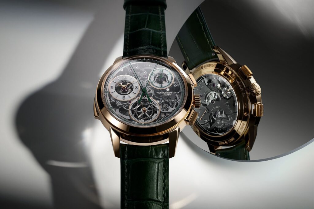 Mang trong mình ba đại diện đỉnh cao của nghệ thuật chế tác – điểm chuông phút, chronograph chia giây và tourbillon với dây tóc hình cầu – Les Cabinotiers Temporis Duo Grand Complication là một tuyệt phẩm độc bản, hội tụ gần 700 chi tiết vận hành nhịp nhàng bên trong vỏ vàng hồng 45mm. Mặt số sapphire xuyên thấu cho phép người xem chiêm ngưỡng bộ máy Calibre 2757 S như một sân khấu trình diễn: từ các cây cầu khắc thủ công, kim nhôm màu olive cho đến hệ thống chronograph chia giây bằng bánh răng titan siêu nhẹ. Mỗi chi tiết đều được hoàn thiện thủ công theo tiêu chuẩn cao nhất của Vacheron Constantin, tạo nên một vũ trụ thu nhỏ trên cổ tay – nơi nghệ thuật và kỹ thuật cùng ngân vang như một bản giao hưởng.
