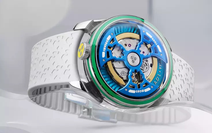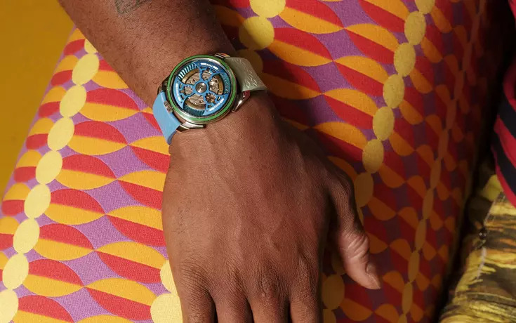Điểm nhấn quen thuộc của MB&F vẫn hiện diện: rotor đặt phía trước và cách hiển thị giờ độc đáo dọc theo cạnh vỏ. Khi kết hợp cùng tư duy màu sắc phóng khoáng từ tuổi thơ Nigeria của Ilori, chiếc đồng hồ trở thành một tuyên ngôn sống, rằng ước mơ, khi được gieo mầm, có thể lớn lên thật tự do và rực rỡ.