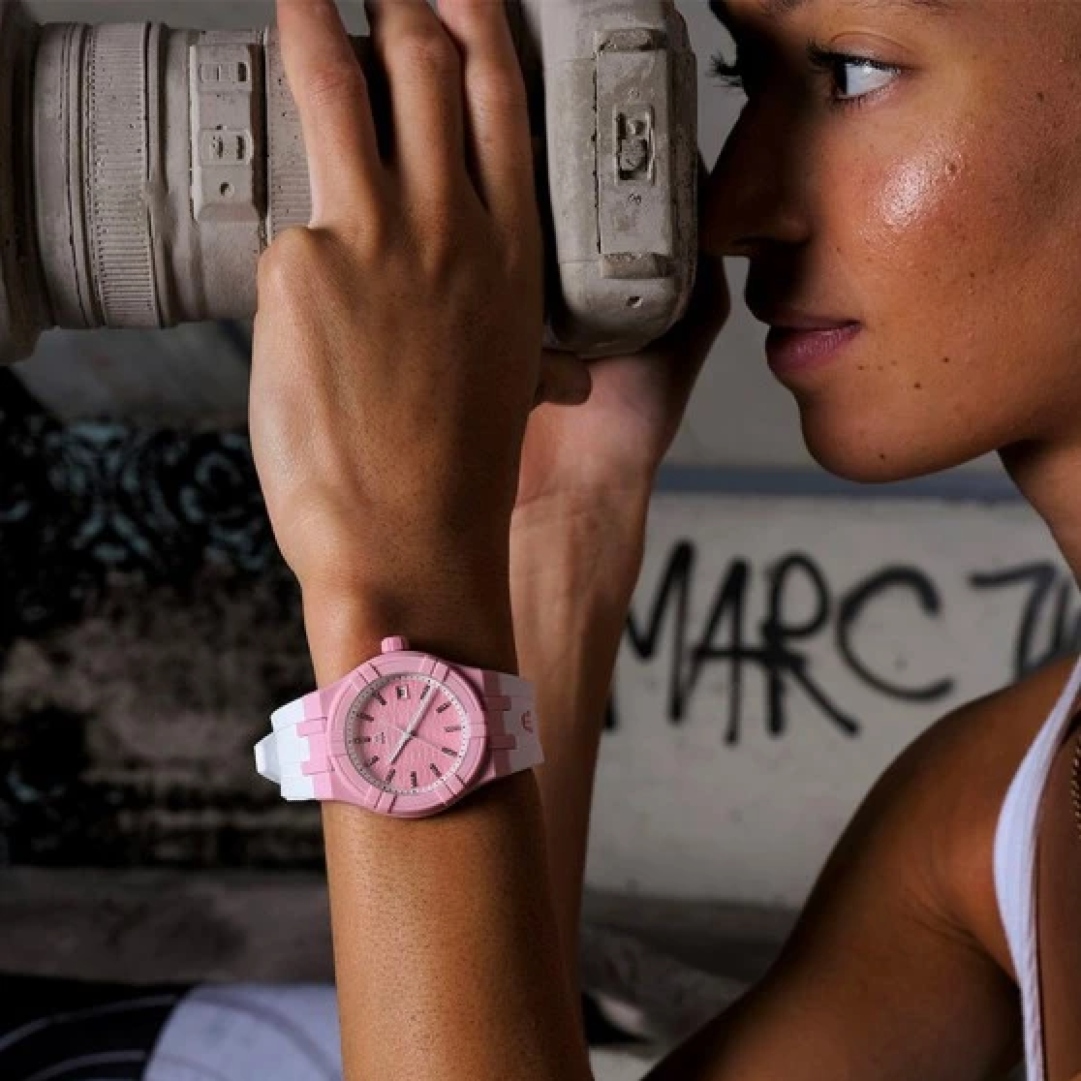 Maurice Lacroix với các đại sứ thương hiệu là vũ công và DJ, là lựa chọn hoàn hảo cho các breaker. Chiếc đồng hồ này kết hợp khéo léo tay nghề Thụy Sĩ và phong cách đường phố, mang lại sự tín nhiệm cần thiết cho người đeo trong các phần biểu diễn. Mẫu Aikon #Tide 40mm với vỏ nhựa tái chế từ nhựa biển màu hồng không chỉ bền vững mà còn nhẹ nhàng, cùng với kim giây lớn dễ nhìn giúp các breaker dễ dàng theo dõi giới hạn 60 giây của phần thi.