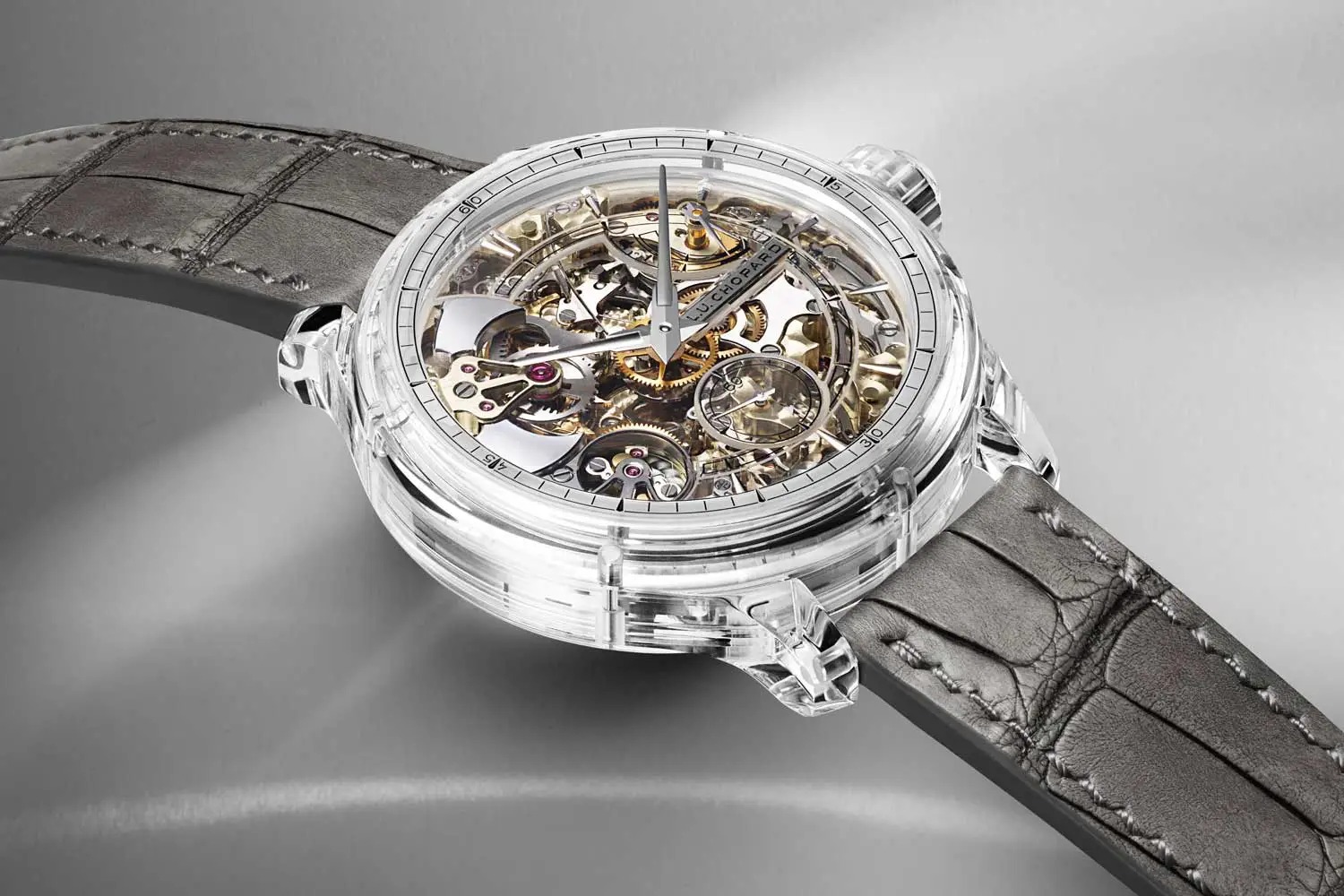 Tài năng cùng sự nhạy cảm, sắc thái và cảm xúc của anh em nghệ sĩ nhà Capuçon đã góp phần không nhỏ trong quá trình tạo nên âm thanh du dương cho L.U.C Full Strike Sapphire, thành viên nổi bật trong bộ ba L.U.C: The Sound of Eternity. Bằng cách bổ sung gia vị của đam mê, họ đã lồng vào chiếc đồng hồ Chopard một dải âm tinh khiết, ngân nga và hài hòa hơn những gì mà hệ thống Minute Repeater kim loại chưa làm được. Thay vì thép, đồng thau và vàng vốn phổ biến nhưng lại dễ đối diện nhiều nguy cơ biến đổi theo thời gian, sapphire được tin dùng để chế tác cồng cho bộ sưu tập L.U.C mới nhằm hướng đồng hồ đến sự vĩnh cửu. Không thể bị biến dạng, lão hóa hay giãn nở vì nhiệt, sapphire cũng khiến cho bộ vỏ trở thành điều kiện hoàn hảo để cồng luôn ngân nga âm Fa và Đô trong trẻo, chuẩn xác và bất biến. Với L.U.C Full Strike Sapphire, toàn bộ vỏ, núm điều chỉnh cùng kim đều gia công từ sapphire, mang lại cho chiếc đồng hồ 42,5mm này phong thái sang trọng hoàn mỹ. Nhờ vậy, L.U.C 08.01-L, bộ máy Minute Repeater đầu tiên trên thế giới, trưng bày trọn vẹn dưới ánh mắt ngưỡng mộ của rất ít người đủ may mắn sở hữu tuyệt phẩm giới hạn vỏn vẹn đúng 5 chiếc.
