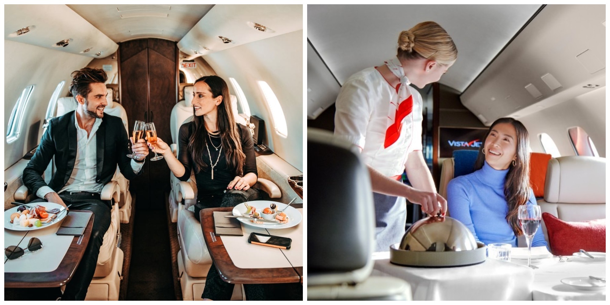 Trong thời gian bay, hành khách có được trải nghiệm không thể tìm thấy ngay cả trên khoang thương gia của các chuyến bay thương mại: từ những chiếc gối êm ái cho đến phòng tắm riêng, bộ đồ ngủ bằng lụa mới tinh và thậm chí cả một phòng ăn được bày biện chu đáo với đĩa trứng cá muối và rượu champagne cổ điển ướp đá. Tuy nhiên, trải nghiệm trên máy bay riêng không chỉ tuyệt vời đối với khách hàng mà còn là sự chiêu đãi dành cho phi hành đoàn trên máy bay.