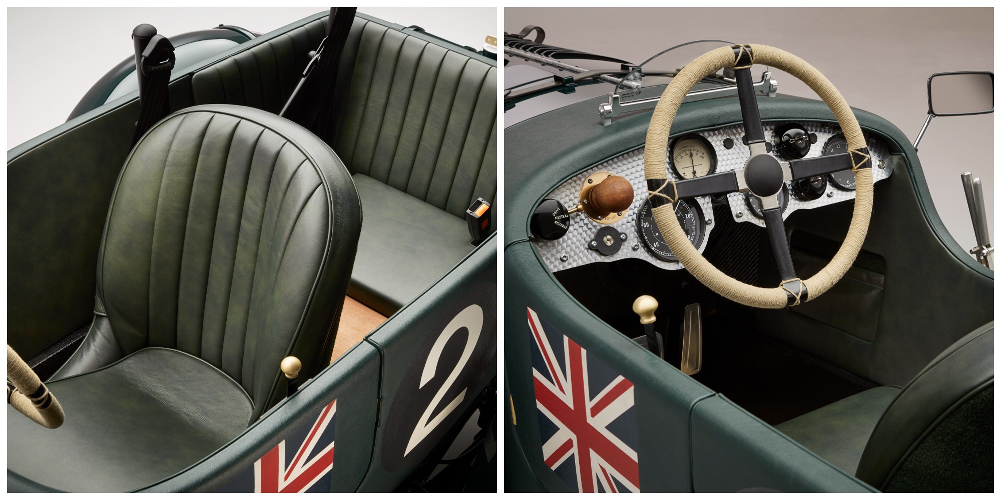 Bentley Blower Jnr First Edition trang bị ghế bọc da Dark Green Lustrana kết hợp với vô lăng quấn dây thừng màu nâu