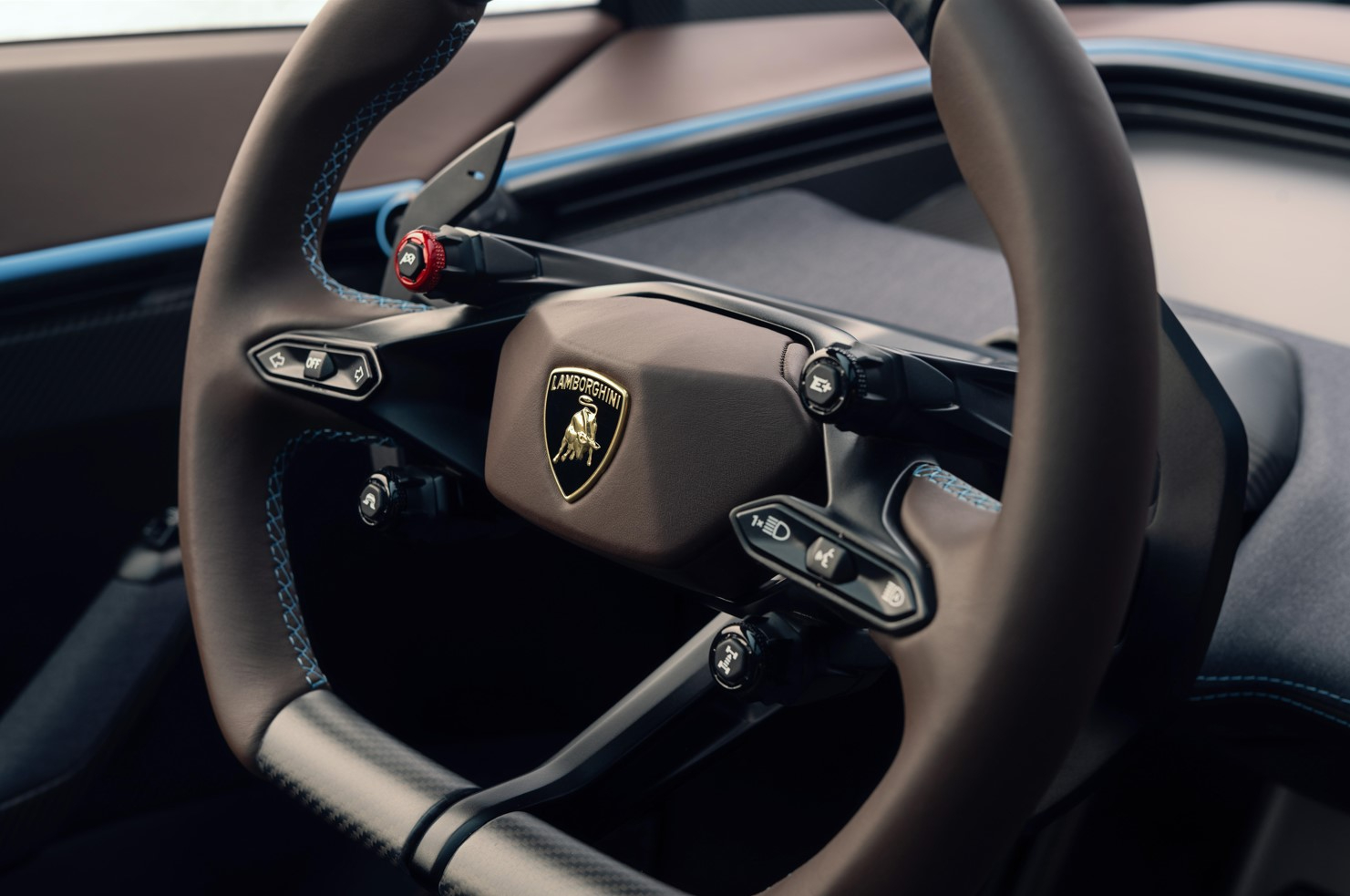 Vị trí trung tâm đằng sau vô-lăng (mà Lamrboghini gọi là vị trí pilot) cũng được xác định bởi chi tiết bảng điều khiển mỏng và nhẹ, sử dụng các yếu tố mang thiết kế mang tính biểu tượng như hình chữ Y lớn được đặt làm cầu điều khiển trung tâm. Với mức độ linh hoạt cao cho mục đích sử dụng hàng ngày, kết hợp với hiệu suất và vị trí ngồi của một chiếc siêu xe thể thao, Trưởng nhóm Thiết kế Mitja Borkert tạo ra một không gian nội thất rộng rãi đến không ngờ khi sử dụng sự tự do trong thiết kế có được nhờ không gian của được gia tăng đặc trưng của xe thuần điện.