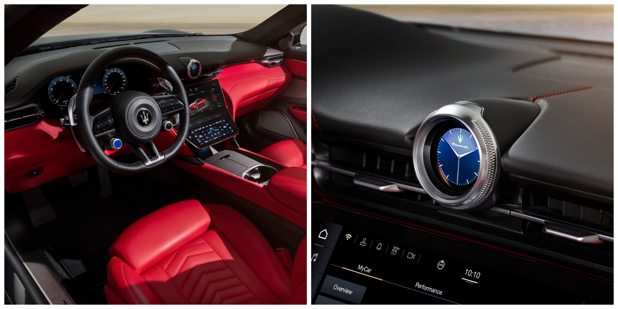 Tương xứng ngoại thất mượt mà, nội thất sang trọng trung thành cùng ngành nghề thủ công đặc biệt hiện diện đâu đó trong các sản phẩm của hãng xe sang nước Ý, nhấn mạnh ‘sự cân bằng của các mặt đối lập’. Trong sắc đỏ nổi bật, ghế nệm bọc da mềm mại – có tựa đầu mang logo ‘cây đinh ba’ hứa hẹn một hành trình dài êm ái, đầy hứng khởi.