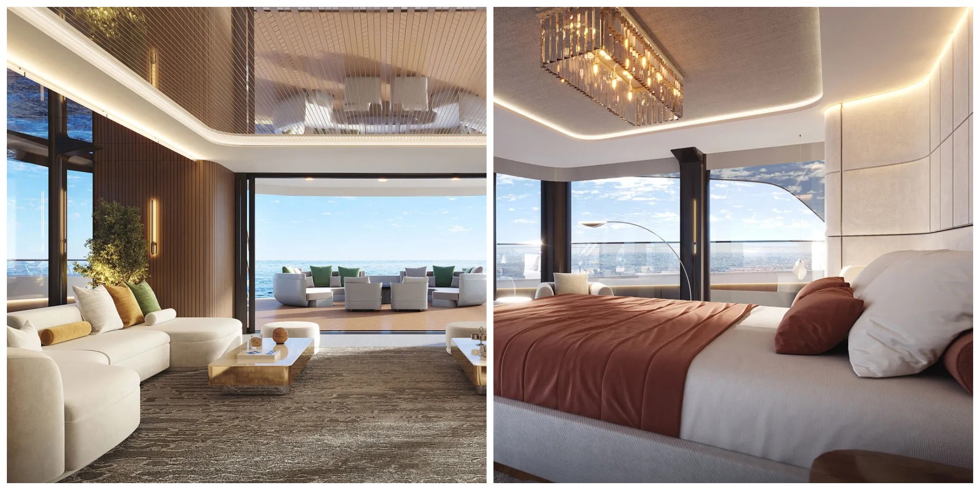 Với bốn tầng rộng rãi, Espada rộng 9,5m mang đến nhiều không gian thư giãn và giải trí, bố trí khoa học cả trong nhà lẫn ngoài trời. Khu vực sinh hoạt chung bao gồm sảnh chính trang nhã có quầy pha chế đầy đủ tiện nghi cùng khu vực ăn uống sang trọng phía trước. Kết thúc cuộc vui bất tận, khách có thể ru mình vào giấc ngủ ngon bên trong không gian ấm cúng của 5 cabin – đủ chỗ cho khoảng 10 người. Trong khi đó, vị chủ nhân tự do tận hưởng khoảnh khắc riêng tư nơi suite sang trọng nhất nằm phía sau tầng trên, mở ra sân hiên riêng phóng tầm nhìn toàn cảnh đại dương. Tất nhiên, du thuyền cũng đảm bảo không gian nghỉ ngơi thoải mái cho thủy thủ đoàn 9 người.