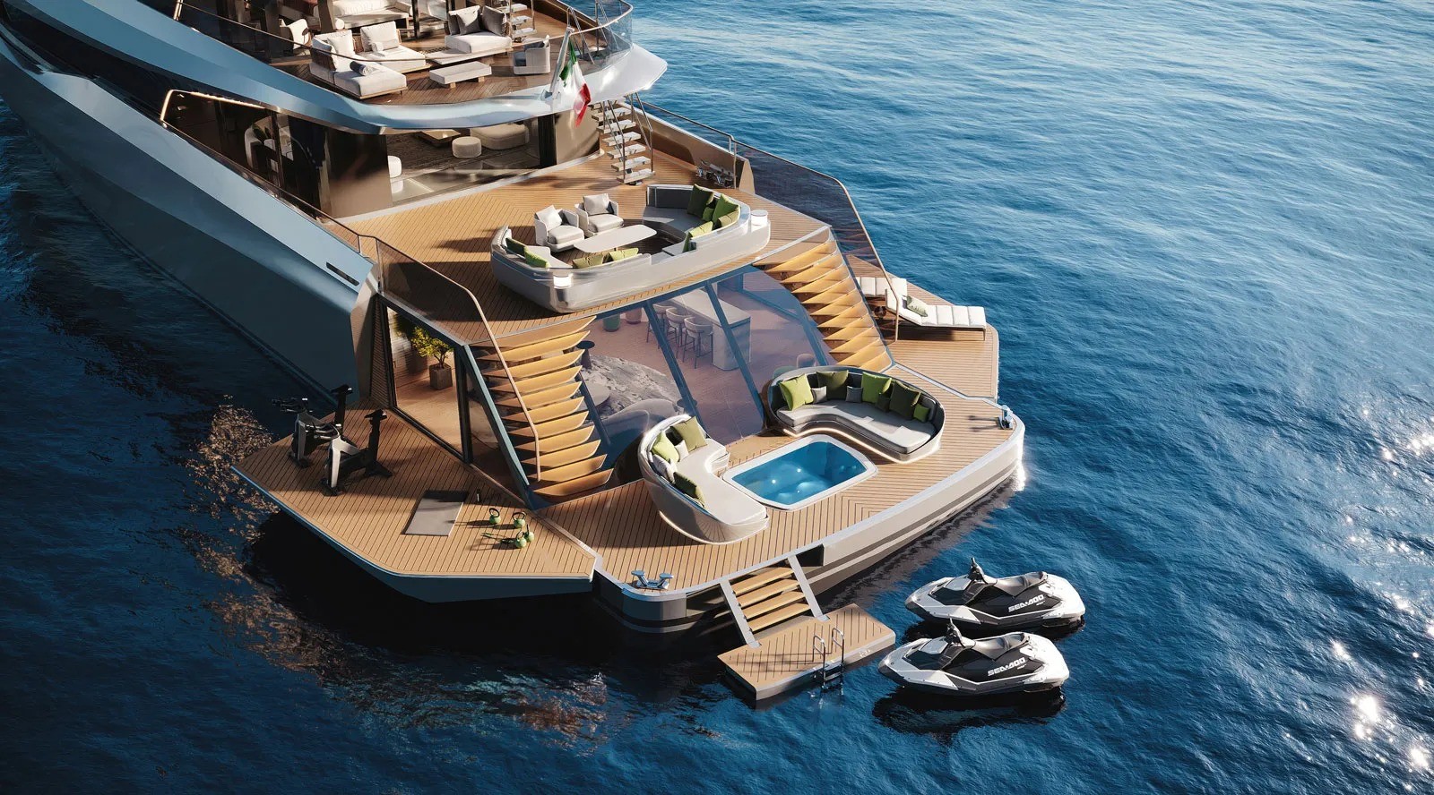 Dài khoảng 40m, Espada concept đến từ ý tưởng sáng tạo của studio thiết kế Officina Armare, là hình ảnh hòn đảo tư nhân thu nhỏ thú vị. Tích hợp đủ đầy chuỗi tiện ích cao cấp, siêu du thuyền concept mời chủ sở hữu mơ về những hải trình riêng tư hoàn hảo nhất.