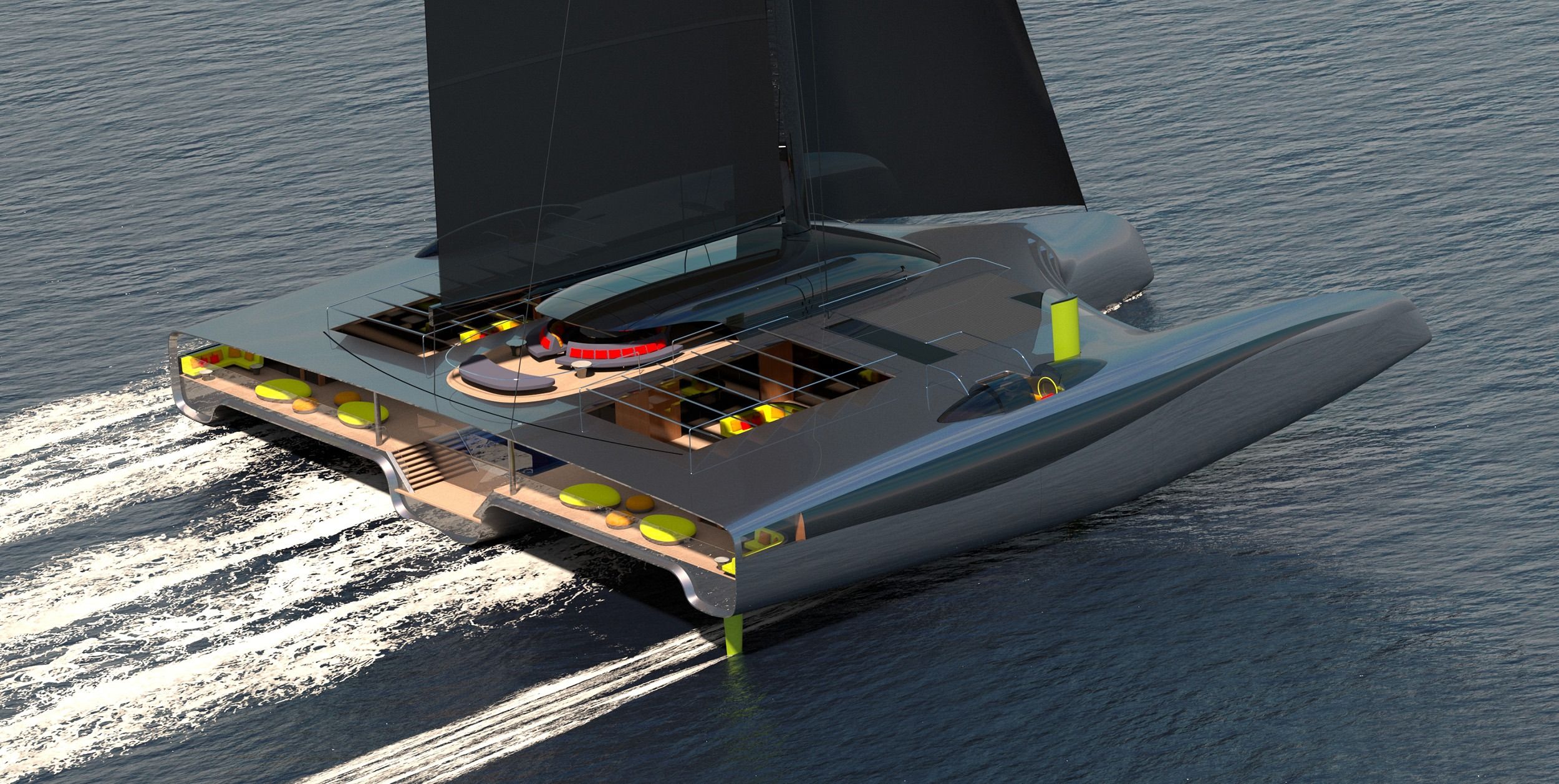 Với hình dạng đặc biệt của mình, Tetra là ý tưởng của nhà thiết kế Jonathan Schwinge về một chiếc du thuyền siêu sang có khả năng kỳ diệu vươn mình thoát khỏi vòng tay của sóng nước, nhấc bổng thân hình kiêu hãnh lên trên mặt biển mênh mông khi di chuyển ở tốc độ cao bằng công nghệ hydrofoil tân tiến. “Ý tưởng này được nuôi dưỡng từ lòng khao khát tái định hình nét đẹp, kiến trúc và linh hồn của chiếc du thuyền hiện đại thông thường, biến chúng thành một không gian giản dị nhưng vô cùng mạnh mẽ”, Schwinge tự hào chia sẻ.
