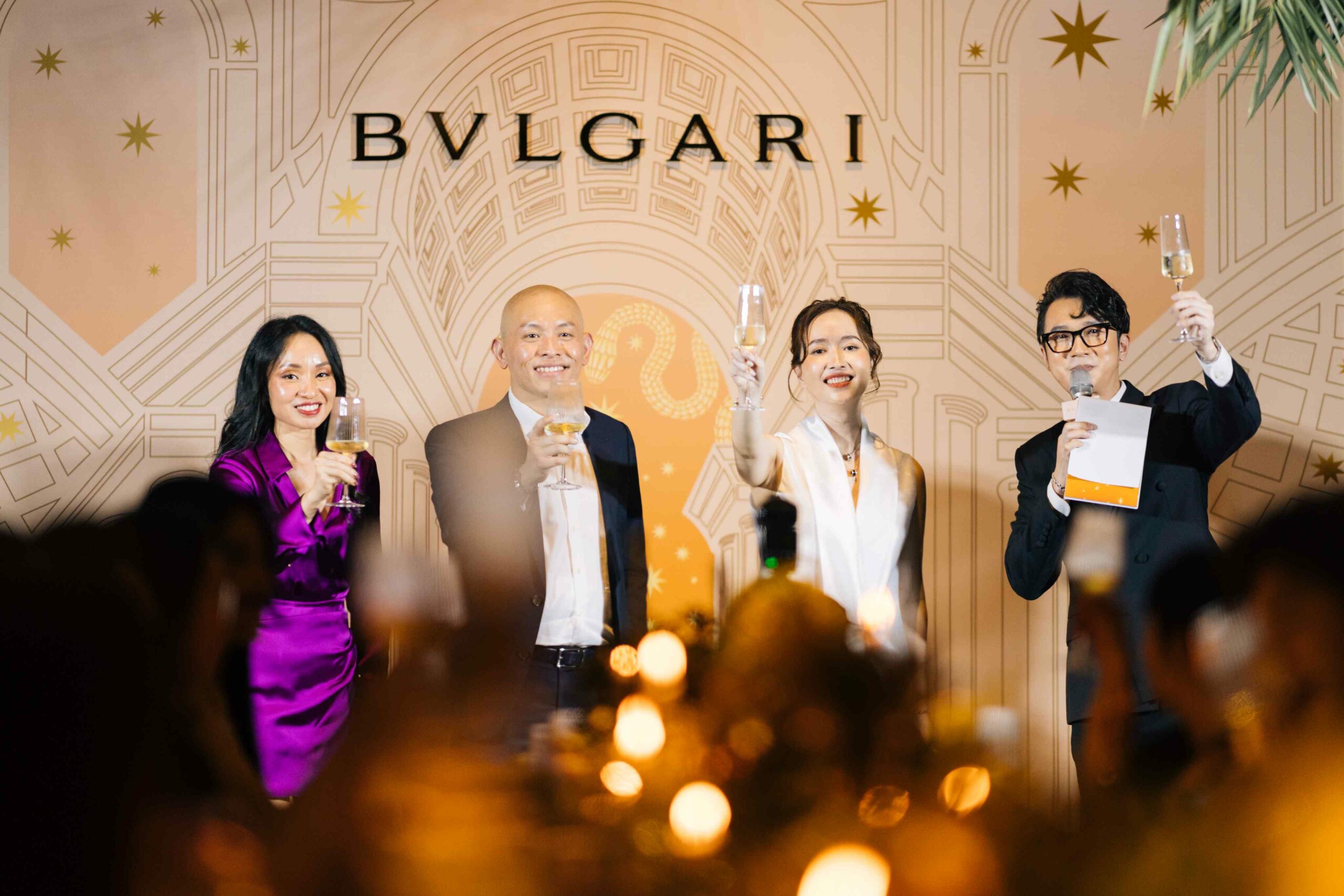 Về phía Bulgari, Ông Jeremy Yeo – Retail Experience Manager – Malaysia & Việt Nam và Bà Nancy Nguyen – Associate Marketing & Communications Manager – Bulgari Vietnam đã góp mặt. Qua màn ảnh nhỏ, Ông Jeffrey Hang – South Asia Pacific Regional Managing Director cũng trân trọng gửi lời cảm ơn đến sự đóng góp của các nghệ sĩ và KOL tại Việt Nam qua rất nhiều hình ảnh, nội dung chất lượng cùng với các đối tác truyền thông đã sát cánh cùng Bulgari tạo nên những ấn phẩm ấn tượng trên cả trên online và offline ấn tượng. Đồng thời, ông cũng chia sẻ tầm nhìn năm 2024 – năm quanh trọng đánh dấu cột mốc 140 năm hành trình của Bulgari toàn cầu, đồng thời cùng chờ đón sự kiện High Jewelry Event hoành tráng sẽ được tổ chức tại Rome vào tháng 5/2024 song song với kỷ niệm 15 năm thành lập quỹ Vì Cộng đồng của Bulgari – Save The Children.