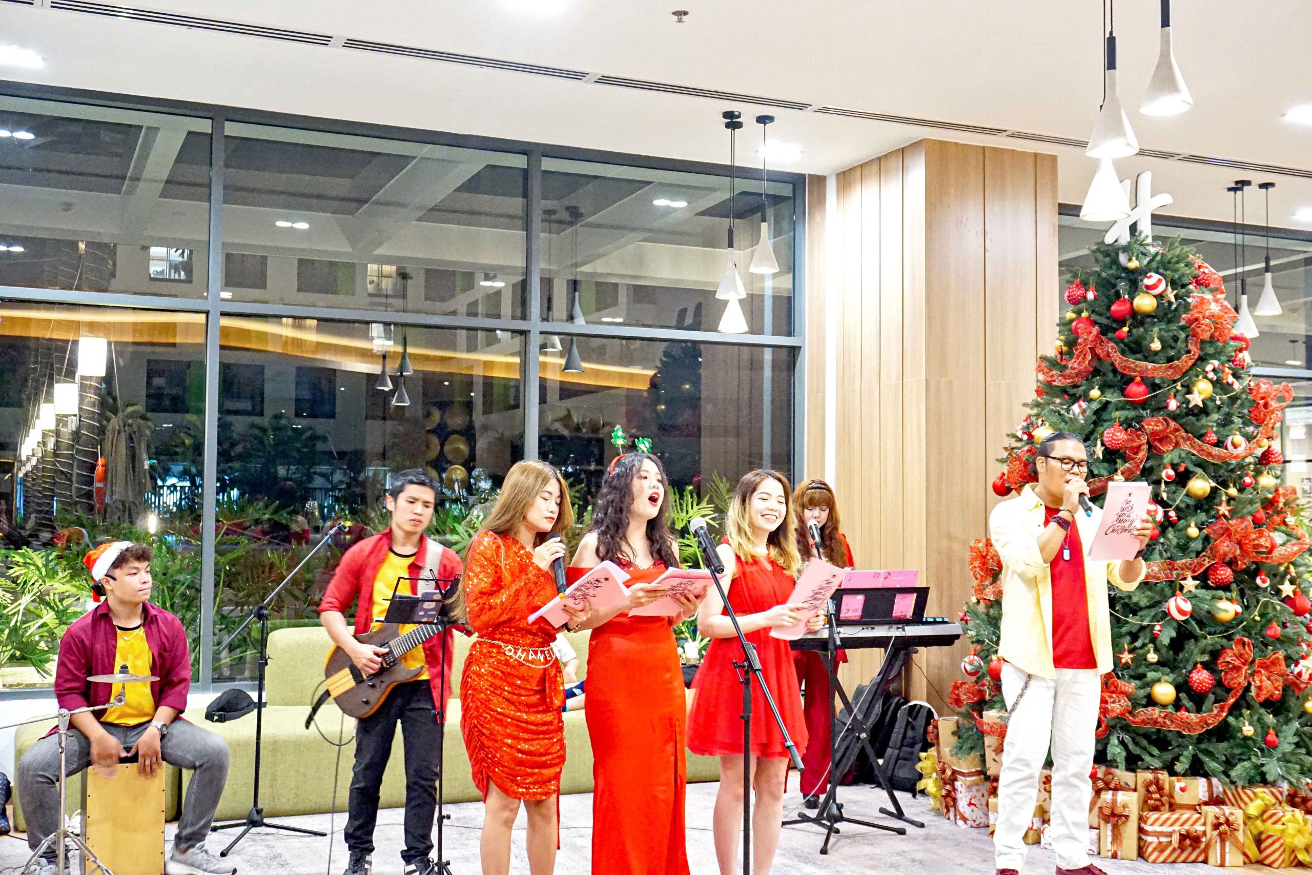rong dịp lễ thắp sáng cây thông Giáng Sinh, toàn thể đội ngũ nhân viên của khách sạn Holiday Inn & Suites Saigon Airport và các khách mời đã có những phút giây thật vui và đáng nhớ. Cô Michelle Singson – Tổng Quản Lý của khách sạn, đã bày tỏ niềm vui, sự phấn khởi của mình khi được cùng các vị khách thắp sáng cây thông Giáng Sinh được đặt ngay sảnh chính của khách sạn.Buổi lễ được diễn ra sôi động với sự góp mặt của ban nhạc đến từ Philippines cùng những bài hát Giáng Sinh được vang lên trong không gian ấm cúng. Bên cạnh đó, sự xuất hiện của ông già Noel cùng những món quà nhỏ đã tạo nên sự thú vị bất ngờ cho các khách mời tham gia tại khách sạn.