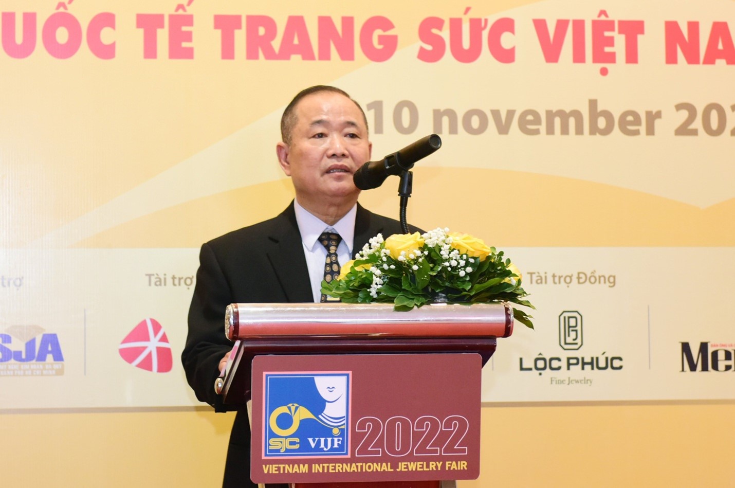 Sau màn trình diễn bộ sưu tập nữ trang mới nhất đến từ công ty SJC, ông Nguyễn Văn Dưng – Chủ tịch Hội Mỹ nghệ Kim hoàn Đá quý TP.HCM (SJA) lên phát biểu chia sẻ, ông đánh giá cao sự nỗ lực của SJC đã tổ chức thành công 29 lần Hội Chợ Triển Lãm Quốc Tế về trang sức và mỹ nghệ kim hoàn, tạo dựng được thương hiệu VIJF uy tín với bạn bè Quốc tế.