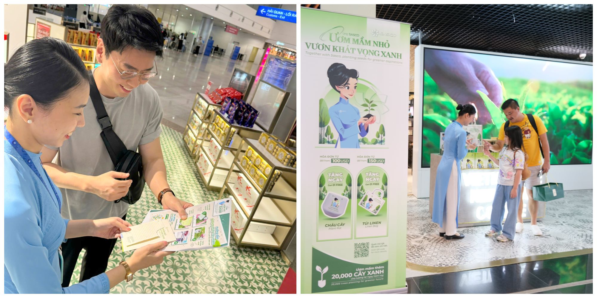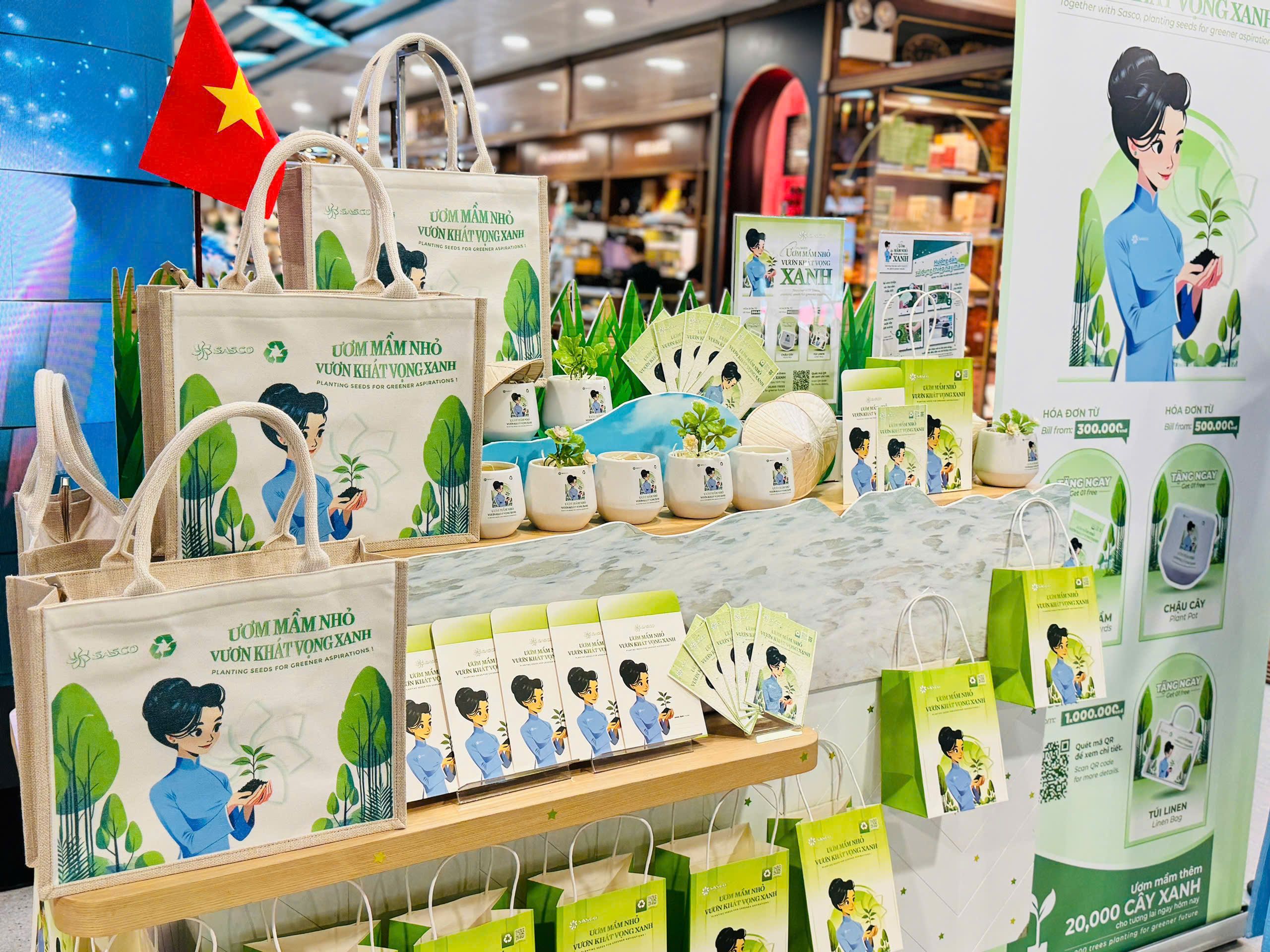 Tại sân bay Tân Sơn Nhất, giữa những hối hả của nhịp sống, khách hàng tìm thấy những món quà bất ngờ đầy ý nghĩa mà chiến dịch “Ươm mầm nhỏ, vươn khát vọng Xanh” mang đến với những thông điệp về sự bền vững và tình yêu thiên nhiên.
