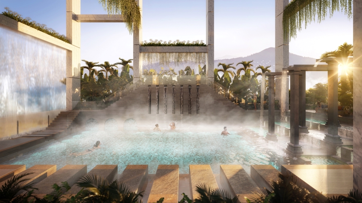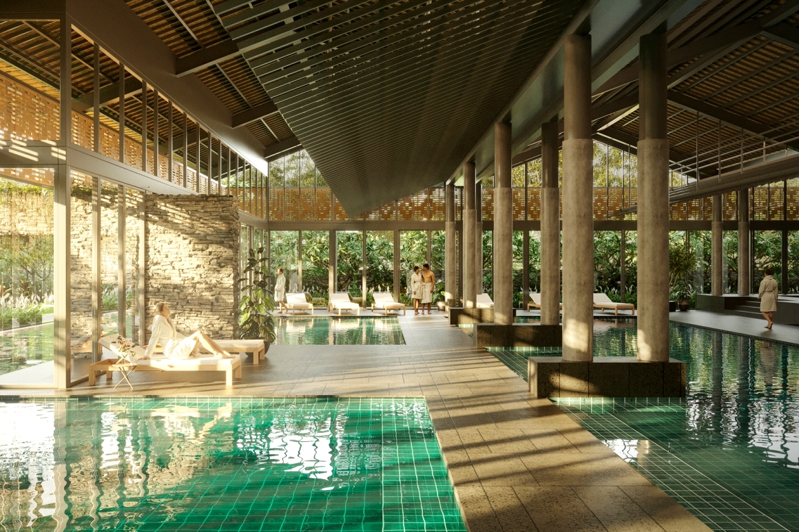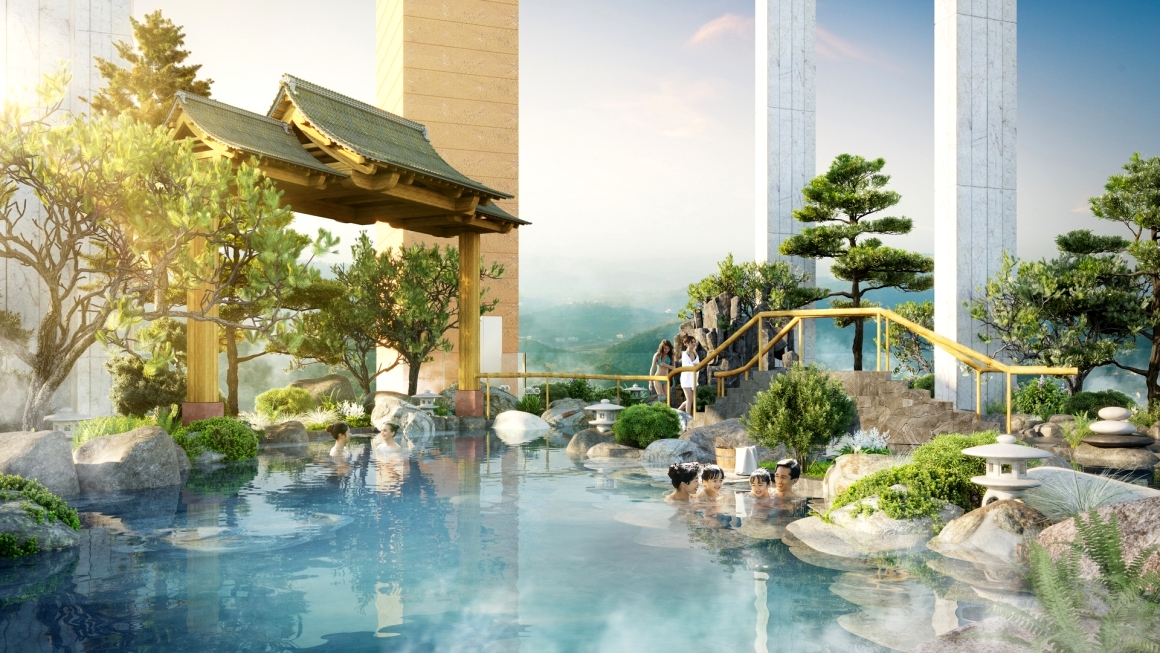 Khuôn viên dự án cung cấp đầy đủ tiện ích nghỉ dưỡng 5 sao như các khu cảnh quan, vườn điều hòa không khí, các khu dịch vụ chăm sóc sức khỏe chuyên sâu như khoáng nước nóng Onsen, khoáng nguyên thủy, tắm bùn, tắm rượu, khu tổ hợp giải trí đa tiện ích như Sky Bar, bể bơi, bể sục jacuzzi ngoài trời, khu spa & gym, khu vui chơi trẻ em,…