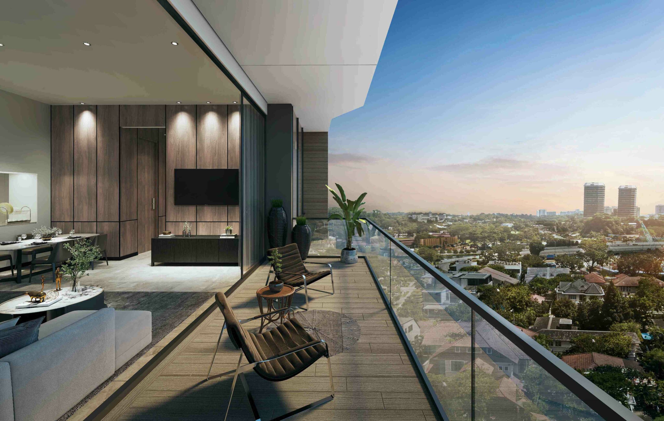 Tự hào với tầm nhìn 360 độ không bị cản trở, Peak Residence tạo cảm giác bầu không gian mở rộng vượt ranh giới những bức tường. Khẽ bước ra ban công, gia chủ chắc chắn ngạc nhiên trước cách tòa nhà cùng môi trường xung quanh hòa quyện vào đường chân trời, mang đến tầm nhìn thú vị về phía những khu dân cư, các không gian xanh xung quanh.