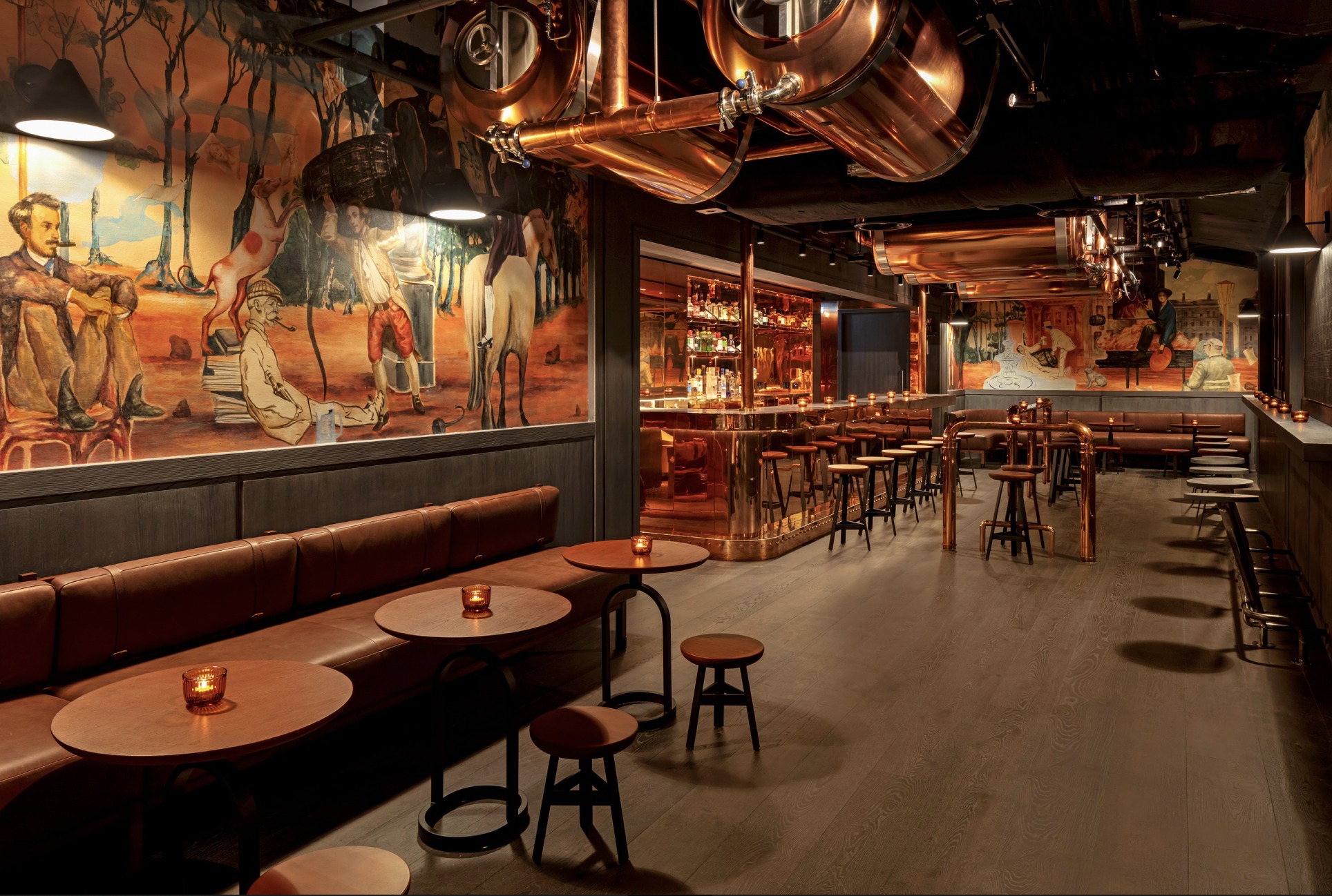 Tầng này cũng bao gồm Joshua’s Tavern, một không gian như quán rượu mang phong cách Industrial đậm nét với đồ nội thất bằng da và các tác phẩm của nghệ sỹ vẽ chân dung thế kỷ 18 Joshua Reynolds. Tiếp đến là tầng lửng – thiên đường tôn vinh thị giác với phòng khách ngập tràn các bức tranh, phòng trưng bày whisky được bố trí như một chiếc hộp trang sức hay sảnh tiếp khách được ốp gỗ hết sức nghệ thuật. Có thể thấy, dụng ý nghệ thuật của nhà thiết kế chính là chia nhỏ các không gian công cộng thành nhiều không gian riêng biệt nhưng liên kết với nhau thành một câu chuyện đồng nhất.