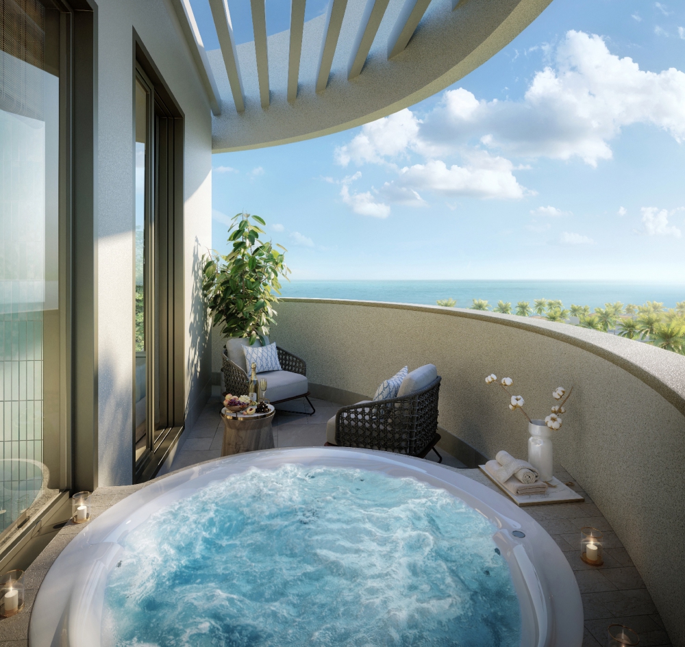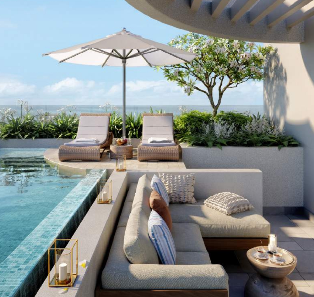 Tất cả các căn biệt thự đều được xây dựng với độ dốc có tầm nhìn hướng biển. Không chỉ vậy, một số căn còn được thiết kế có bể bơi hoặc bể sục jacuzzi ngay trong nhà để nâng cao việc bảo vệ sự riêng tư cho gia chủ. Phủ lên mình những gam màu trung tính như xám, xanh, nâu cùng thiết kế tối giản mang phong cách Bắc Âu, những căn biệt thự biển hoàn toàn đáp ứng nhu cầu về một trải nghiệm sống hiện đại, sang trọng, sánh tầm đẳng cấp thượng lưu của các cư dân.
