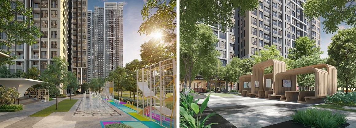 Khu chung cư cũng mang đến nhiều tiện ích nội khu đặc quyền tại mỗi tòa như bể bơi tầng thượng, khu vực Business Center, phòng sinh hoạt đa năng, phòng tập Gym, thư viện trong nhà và ngoài trời, rạp chiếu phim trong nhà, vườn xanh lọc không khí, công viên nước tương tác, lounge thư giãn ngoài trời, vườn trên không,…
