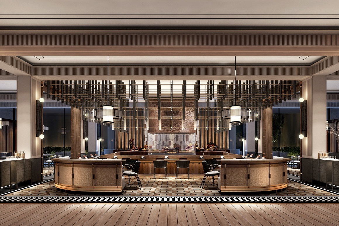 Du khách được chào đón bằng những thiết kế mô phỏng nét tinh hoa kiến trúc cổ truyền Việt, qua hệ thống kết cấu giàn gỗ truyền thống, còn gọi là Bovi, được biến tấu thành những hoa văn tinh tế tìm thấy trên các bức bình phong, thảm và phụ kiện; và Gian Nhà – một phong cách kiến trúc khác của địa phương với các ngăn nhỏ và các khoảng sân xanh bên trong một ngôi nhà Việt truyền thống. Thiết kế Gian Nhà này làm lu mờ lằn ranh giữa khoảng không gian trong nhà và sân vườn, đem lại sự riêng tư, sang trọng đương đại mà vẫn mang hơi thở nét sinh hoạt của người Việt xưa.