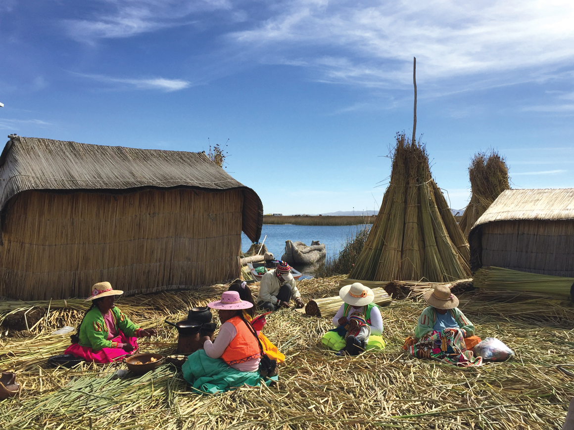ặt chân lên nền lau sậy có chút thô ráp tựa như đang dạo bước trên một miếng bọt biển khổng lồ, cảm giác như bề mặt bên dưới đang bị nén xuống mỗi khi bước đi và bạn có thể “chìm xuống” vùng nước băng giá bao quanh những hòn đảo xinh đẹp này bất cứ lúc nào. Và còn biết bao điều thú vị tại những hòn đảo nhân tạo của bộ lạc Uros đang chào đón các du khách đến tìm tòi, khám phá.Đây cũng là nơi cư ngụ của tộc người Uru cách đây hơn 500 năm với dân số hiện tại khoảng 4.600 người. Hai hòn đảo độc đáo này được tạo nên từ những cây sậy tortora cao hai mét được bó chặt và cố định vào đáy hồ bằng dây thừng cùng cọc nhọn. Mặc dù lớp nền bằng sậy đôi khi mang đến cảm giác không dễ chịu nhưng lại đủ chắc chắn để chống đỡ được các cụm lều tranh vốn là nơi nương náu của những gia đình người bản địa.