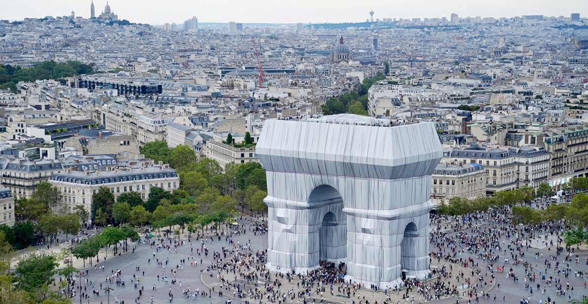 L’Arc de Triomphe Wrapped, một tác phẩm sắp đặt do cố nghệ sĩ Christo và Jeanne-Claude thiết kế, đã ra mắt công chúng ở Paris. Qua đó, Khải Hoàn Môn mang tính biểu tượng của kinh đô ánh sáng trên đại lộ Champs-Élysées được bao phủ bởi 25.000 mét vuông vải bạc có thể tái chế và được buộc cố định bằng 7.000 mét dây màu đỏ.