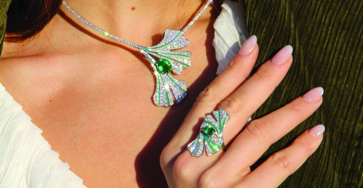 Duyên dáng như một nàng vũ công nhảy múa trên sân khấu dựng lên từ vàng bạc và đá quý, những tuyệt tác trang sức từ bộ sưu tập Ginkgo không chỉ đơn thuần là món trang sức lấp lánh tô điểm dung nhan của nữ chủ nhân mà còn tôn vinh niềm hy vọng, sức mạnh nội tại cũng như tuổi thọ của loài người. Đó cũng là lời chúc phúc giản đơn từ loài cây Ginkgo (Bạch quả) – vốn từ lâu được xem như một loại dược liệu quý với nhiều công dụng tuyệt vời.