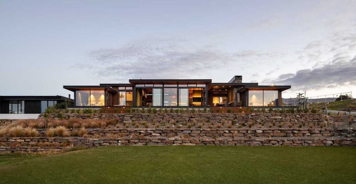 Mọc lên trên khu đất bậc thang ở Wanaka, New Zealand, ngôi nhà do Barry Condon thiết kế sở hữu mái dốc thấp cùng hiên sâu. Đặc biệt, giám đốc của Condon Scott Architects đã kết hợp đá và gỗ để mang đến cho không gian sống vẻ đẹp hiện đại mà mộc mạc.
