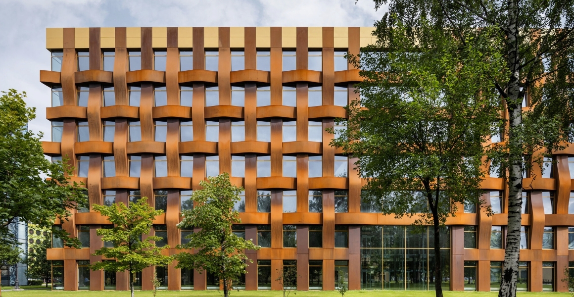 Tchoban Voss Architekten vừa hoàn thành dự án Ferrum 1 – tòa nhà văn phòng mới ở Saint Petersburg, Nga. Thoạt nhìn như được dệt bằng thép phong hóa, mặt ngoài điêu khắc tạo cảm giác như tấm vải kết hợp sợi dọc và sợi ngang “phấp phới” bay trong gió.
