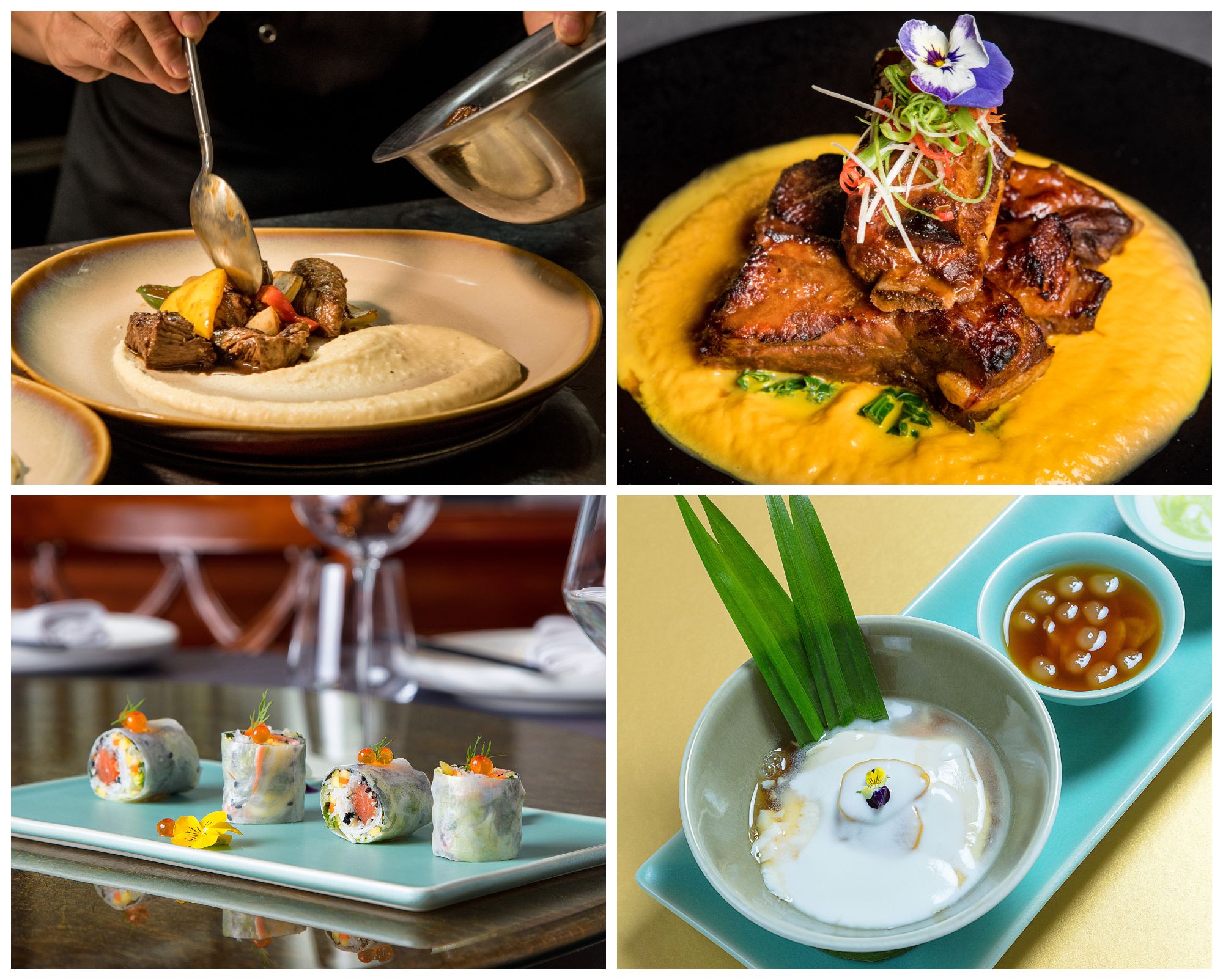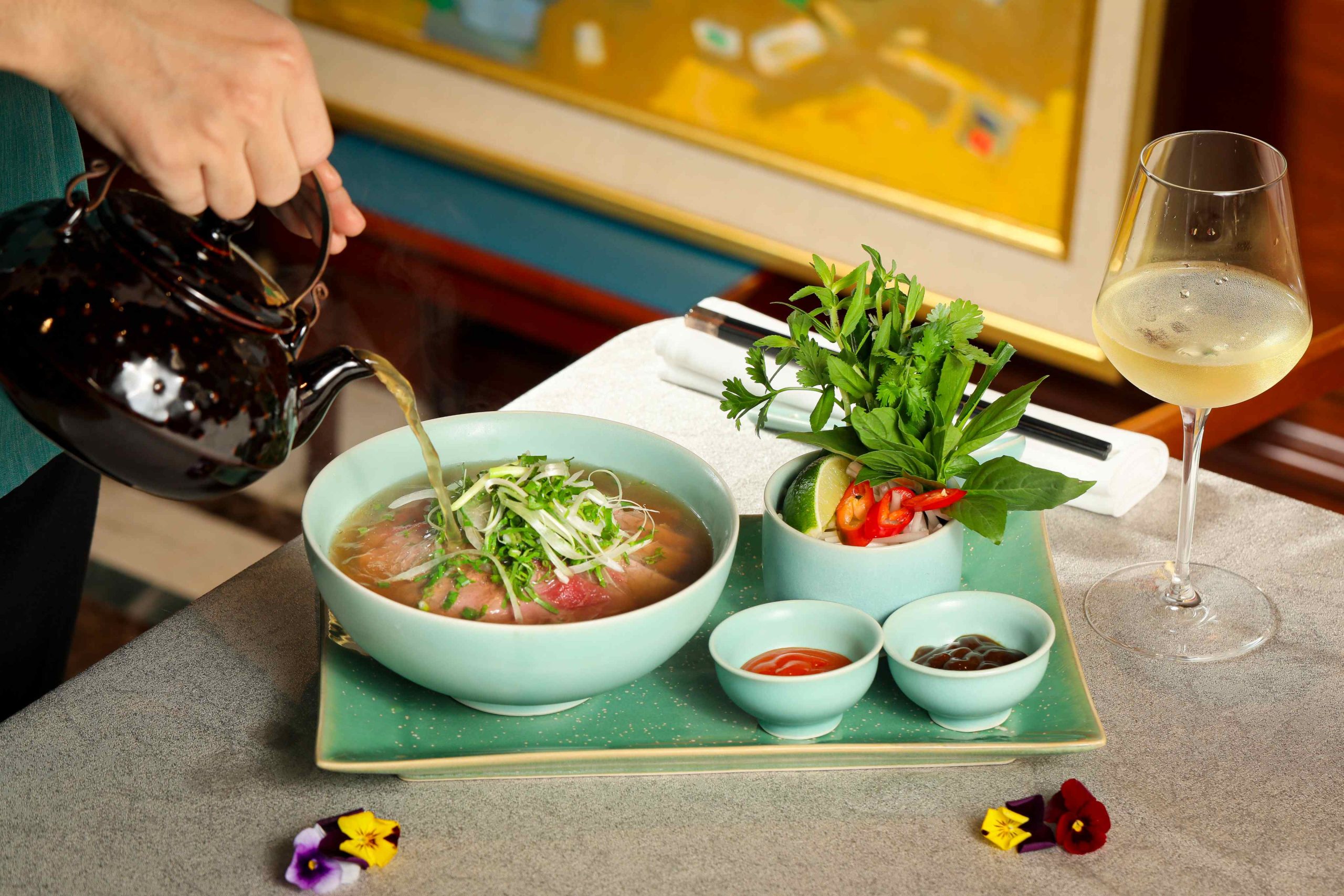 Món Gỏi cuốn cá hồi được chuẩn bị với những lát cá hồi tươi ngon nhất kết hợp cùng những nguyên liệu rau củ như mè đen, xoài xanh, thì là và đặc biệt là trứng cá caviar thượng hạng để tạo ra món khai vị tinh túy của ‘biển cả và vườn nhà’. Món Phở bò Úc sử dụng nguyên liệu thịt bò Úc cao cấp hài hòa cùng các gia vị thuần túy địa phương, làm nên nét độc đáo, hấp dẫn trong cả hương lẫn vị của món ăn mang đậm hồn Việt này.