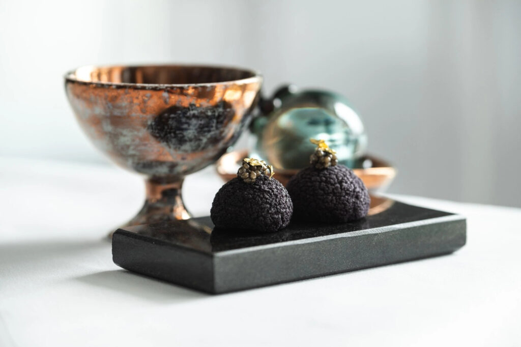 Bữa tối thường khởi đầu tại Pinstripe Bar với một ly cocktail mang dấu ấn riêng, negroni kết hợp bưởi pomelo hay old-fashioned biến tấu, trước khi bước vào bữa tiệc vị giác chậm rãi mở ra. Từng món, từ Venison Wellington đến vịt ủ chín ăn kèm Lawar Bali, đều được trình bày tinh tế, cân bằng hoàn hảo giữa thẩm mỹ và hương vị.