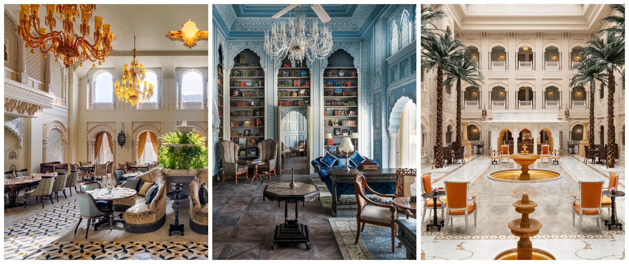 Mỗi yếu tố trong ‘cung điện xa hoa’ đều được các nghệ nhân lành nghề chế tác một cách tinh xảo, pha trộn giữa truyền thống cùng kỹ thuật lâu đời của kiến trúc Mughal và Rajputana. Tạo ra trải nghiệm vô cùng thân mật, 50 phòng và suite được bài trí, tô điểm độc đáo sở hữu ban công rộng rãi với bồn hoặc bể ngâm ngoài trời. Các chi tiết phức tạp tô điểm mọi góc nhỏ không gian, bao gồm trần sơn màu, tranh tường mạ vàng, đồ nội thất khảm xương lạc đà, đồ tạo tác có nguồn gốc địa phương và thảm dệt Jaipur.