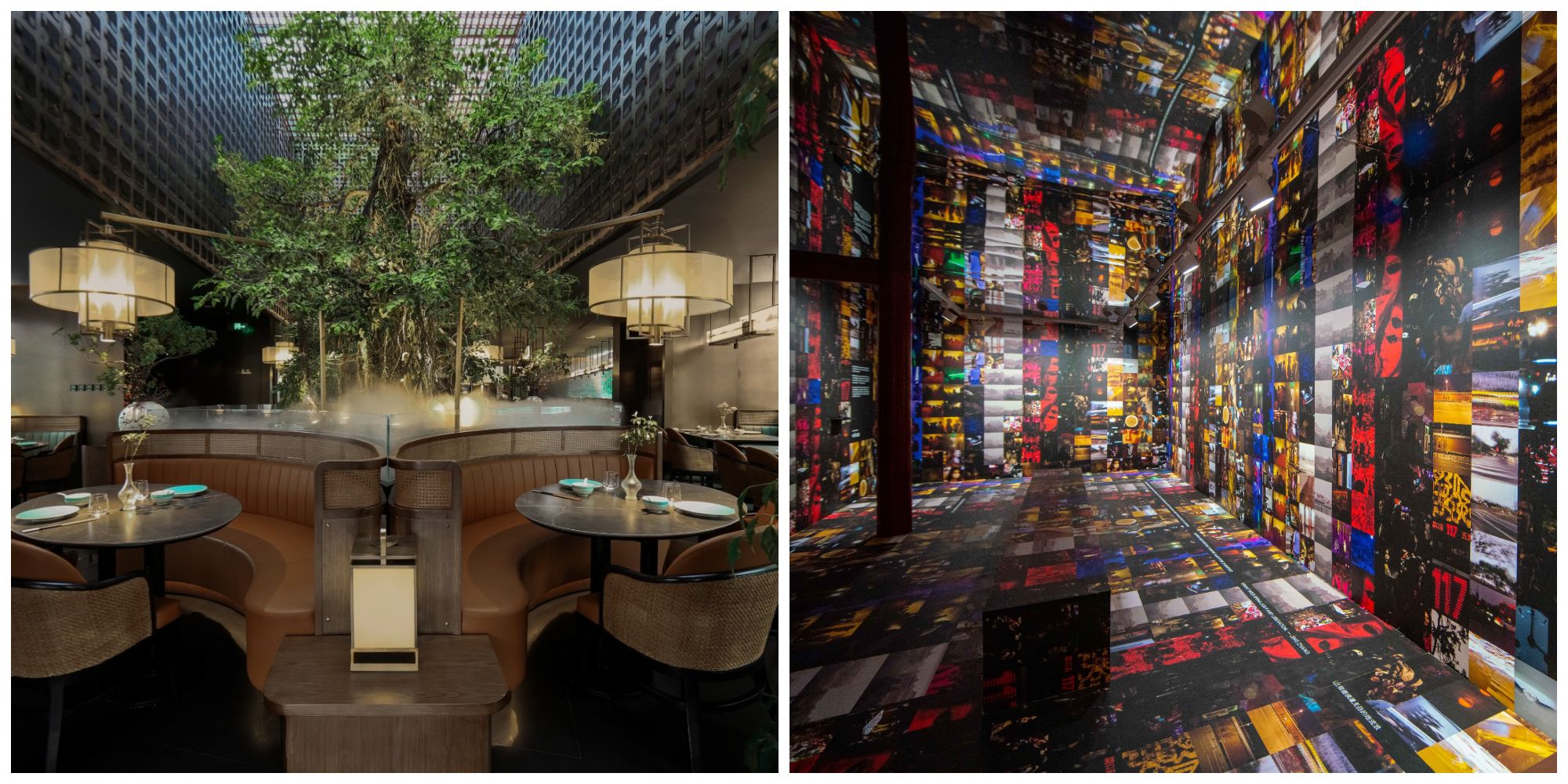 Khi bước vào quầy lễ tân của khách sạn, du khách chắc chắn chú ý đến đèn cá koi Formica màu hồng của Frank Gehry treo trên trần nhà. Đây là chiếc đèn nhiều màu sắc đầu tiên của Gehry được trưng bày trước công chúng. Nghệ thuật phản ánh sự kết hợp giữa lịch sử cổ và đương đại của Bắc Kinh cũng xuất hiện nhiều trong không gian chung. Trong nhà hàng bít tết sang trọng đương đại, bức ảnh đen trắng của nhiếp ảnh gia Trung Quốc Jin Shisheng và phóng viên ảnh người Pháp Louis-Philippe Messelier mô tả Trung Quốc trong những năm 1920 tô điểm các bức tường.
