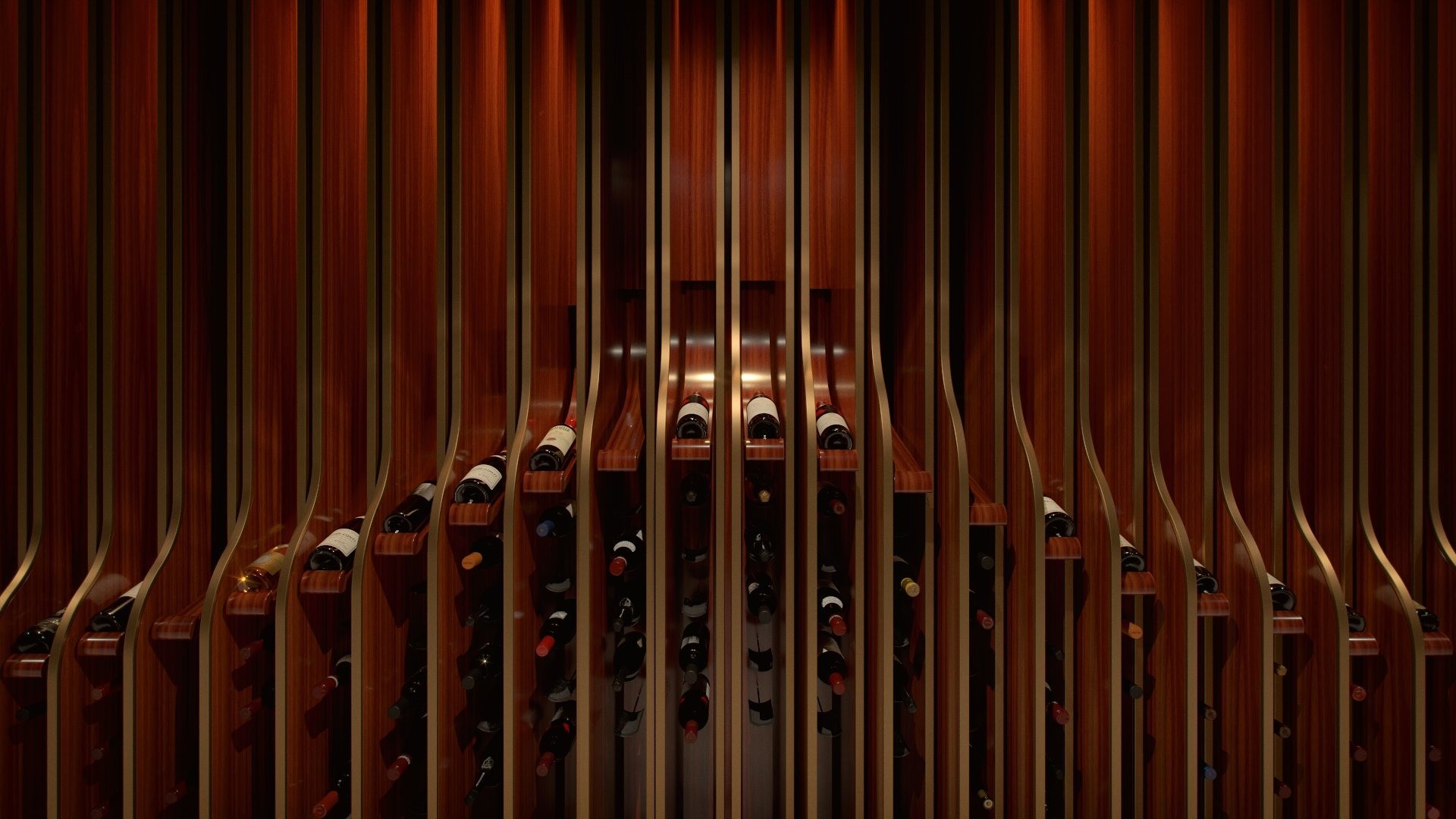 Tác phẩm sắp đặt trên tường này sẽ quyến rũ những tay chơi sành rượu ngay từ cái nhìn đầu tiên với mỗi kệ cong hiện đại bên trong cửa giữ nhiệt có thể chứa được 34 chai rượu. Khi các tủ xoay tự động được chủ nhân vận hành, khoảng 800 chai rượu khác sẽ được hé lộ bên trong phòng “ẩn” phía sau. Đặc biệt, các tủ đều có bộ điều khiển nhiệt độ riêng biệt, một cho rượu vang đỏ và một cho rượu vang trắng hoặc champagne.