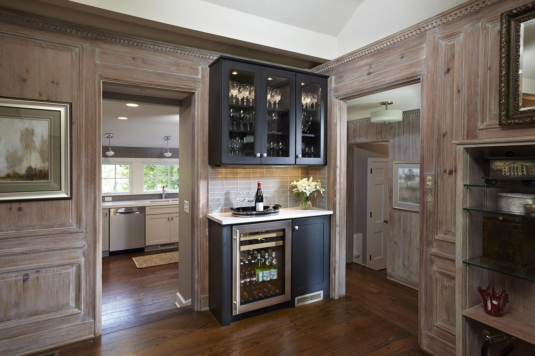 Cửa hàng rượu bespoke dưới đây là một không gian được thiết kế vô cùng huyền bí và quyến rũ dành cho những gia chủ sành rượu. Hoàn thiện bằng gỗ sồi và gỗ tulip sơn mài đen, kết hợp mặt bàn bằng đá granit đen; nơi đây có mọi thứ cần thiết để bảo quản một lượng lớn rượu trong điều kiện tối ưu – một phần nhờ công của cánh cửa bằng gỗ chắc chắn đã được lắp kính hai lớp để giúp duy trì nhiệt độ và độ ẩm.