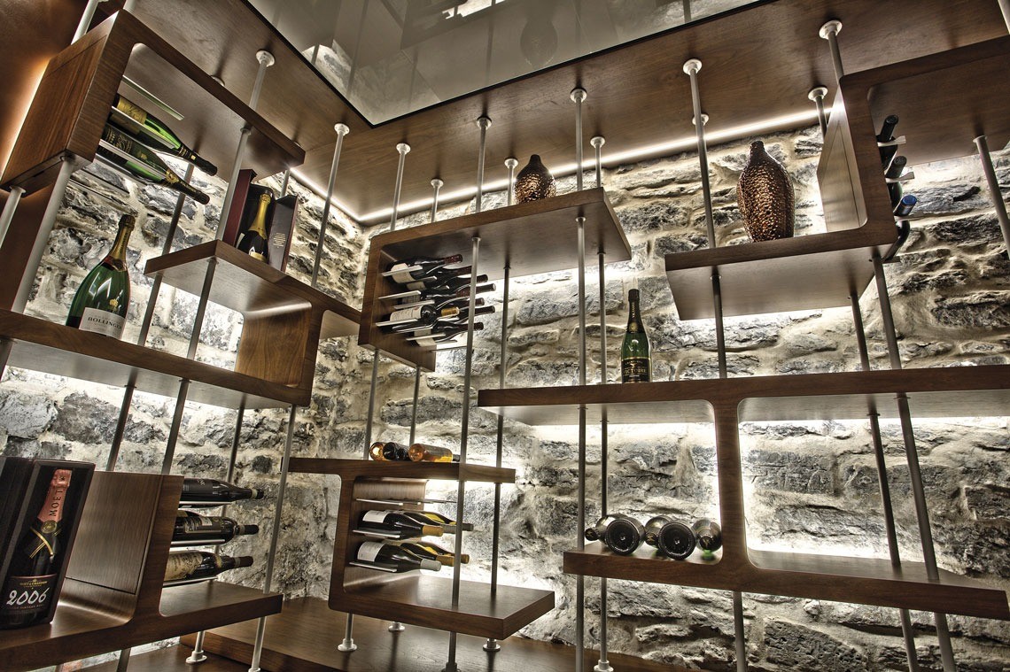 hững gia chủ sành rượu đã luôn theo đuổi những bí quyết để giữ rượu vang trong trạng thái hoàn hảo nhất. Ở những ngôi nhà cổ xưa, người ta cất giữa rượu trong những hầm tối dưới lòng đất – được xây dựng bằng đá tối màu, kín bưng, không để lọt bất cứ tiếng ồn hay mùi vị nào khác và đồng thời cũng phải được thông gió tốt để tránh ẩm mốc. Đến thời hiện đại, chúng ta đã có nhiều cách hơn để xây dựng phòng chứa rượu; từ đó biến nơi đây không chỉ là một khu vực mang công năng lưu trữ mà còn thể hiện đẳng cấp cũng như sự tinh tế của chủ nhân. Bảo quản rượu đúng tiêu chuẩn có nghĩa là bộ sưu tập rượu ấy cần được bảo quản đúng cách trong nhiều năm, bên trong chiếc tủ làm mát được phân chia thành nhiều vùng nhiệt độ khác nhau phù hợp cho rượu trắng hoặc rượu đỏ. Những bộ dụng cụ được chế tạo tùy chỉnh này – hoặc các phòng chứa – có thể được trang bị trong kho lưu trữ riêng và bao gồm giá đỡ, tủ cũng như quầy bar.