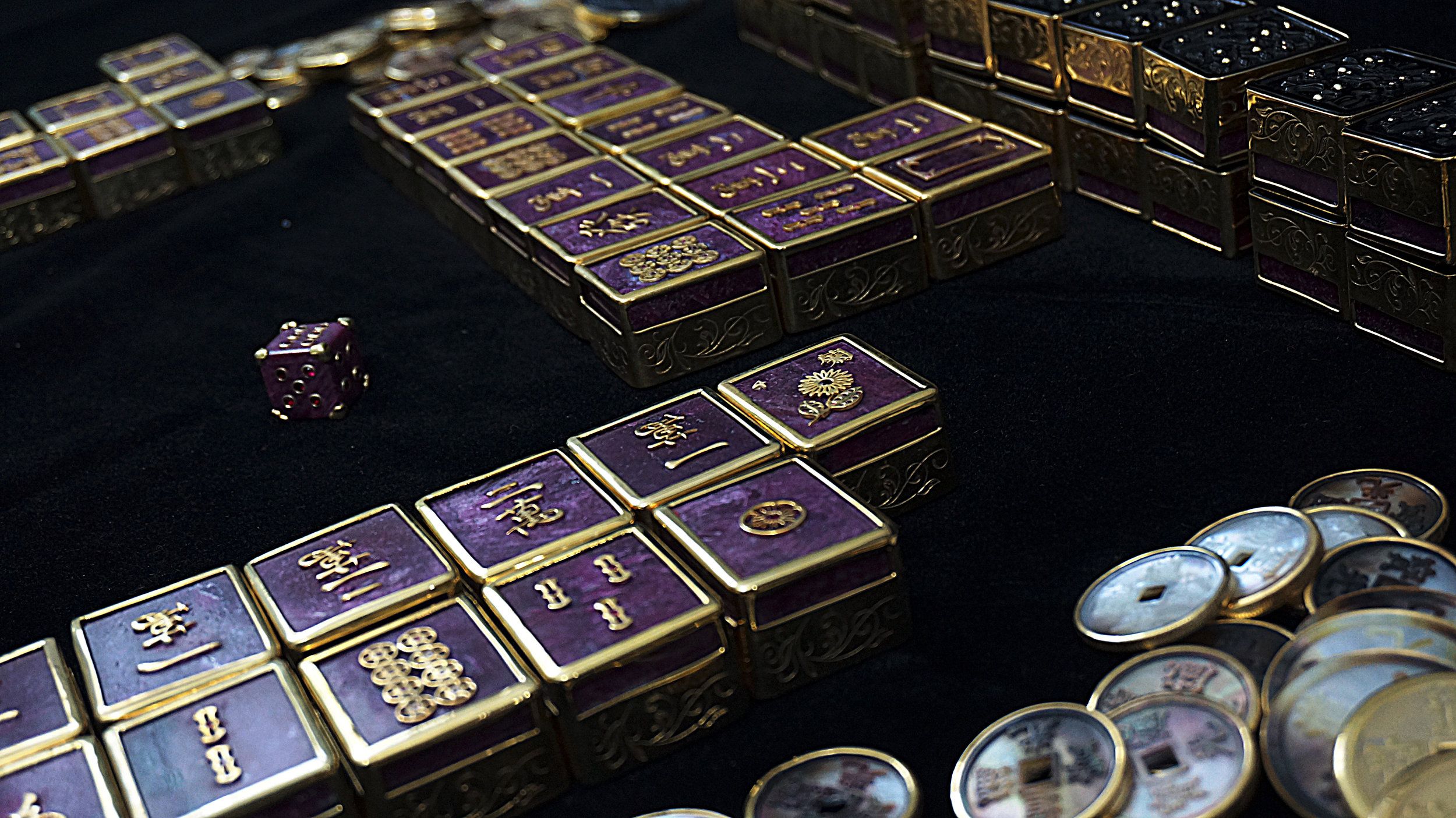 Khung bảo vệ của bộ mạt chược được chạm khắc công phu và được dát vàng vermeil – màu sắc tượng trưng cho sự trung lập và may mắn, theo truyền thuyết ngũ hoàng của Trung Hoa cổ. Trên cả hai mặt của mỗi quân cờ đều được trang hoàng lộng lẫy bằng hơn 1,000 viên ruby Myanmar và 300 viên kim cương cao cấp nhất, khẳng định đẳng cấp và phong cách thượng lưu của người sở hữu. Ngoài ra, các đồng xu được làm từ xà cừ đen hoặc trắng, viền vàng, cũng được chạm khắc tinh xảo, thêm vào đó là sự tinh tế của hai viên xúc xắc: một viên được khắc với ruby Burma và viên kia được trang trí bằng kim cương đặt kiểu pave. Cả hai đều được bảo vệ bởi góc mạ vàng, nâng tầm thẩm mỹ và sang trọng cho toàn bộ bộ sản phẩm. Cuối cùng, từng bộ mạt chược đều được đặt trong chiếc hộp gỗ mahogany sang trọng, được ốp lớp gỗ mun đen mỏng, làm nổi bật vẻ đẹp xa xỉ và quyến rũ của bộ sưu tập này.