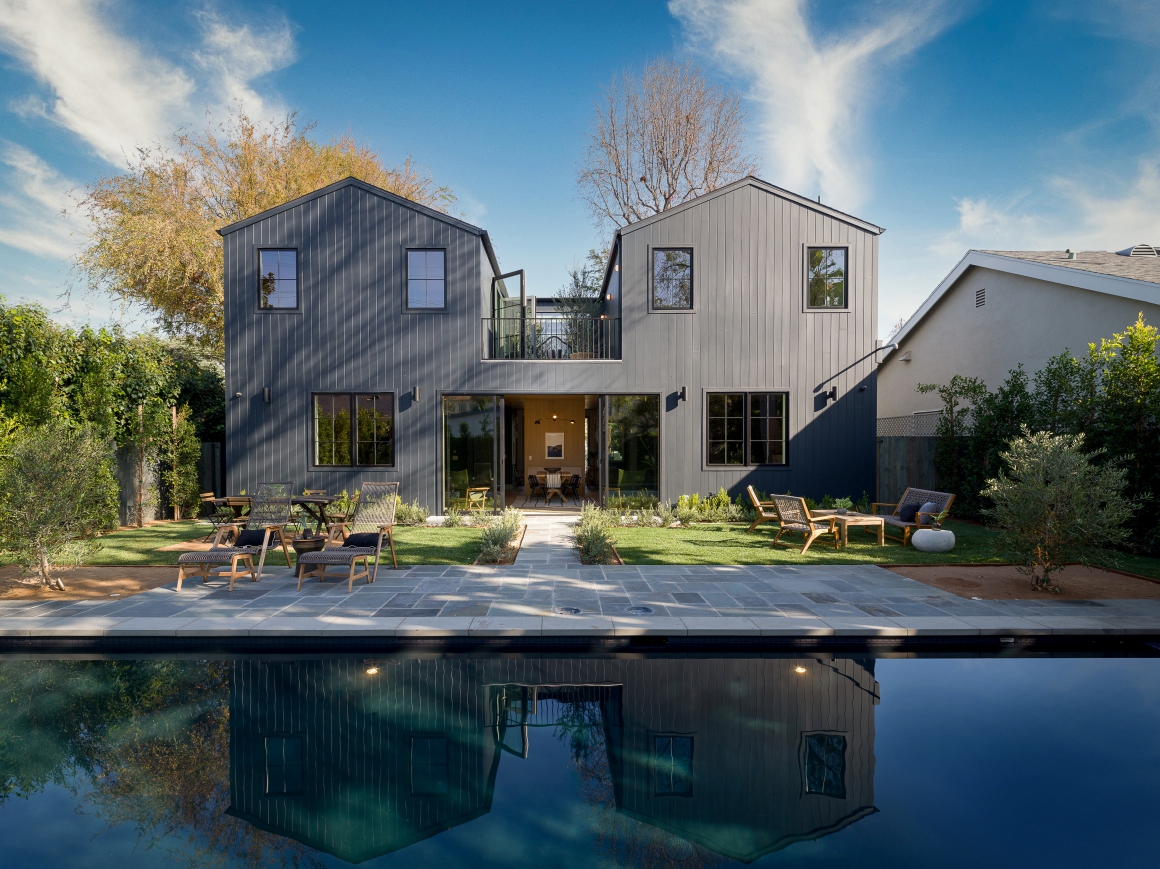 gụ tại Studio City – California, ngôi nhà vốn chỉ gồm một tầng rộng 1.666 feet vuông với các phòng nhỏ, chật chội và cũ kỹ. Việc tu sửa bao gồm tăng gấp đôi kích thước đồng thời tạo ra ngoại thất gỗ tối màu, bổ sung phong cách Farmhouse hiện đại mới mẻ, phù hợp nhịp sống đương thời.