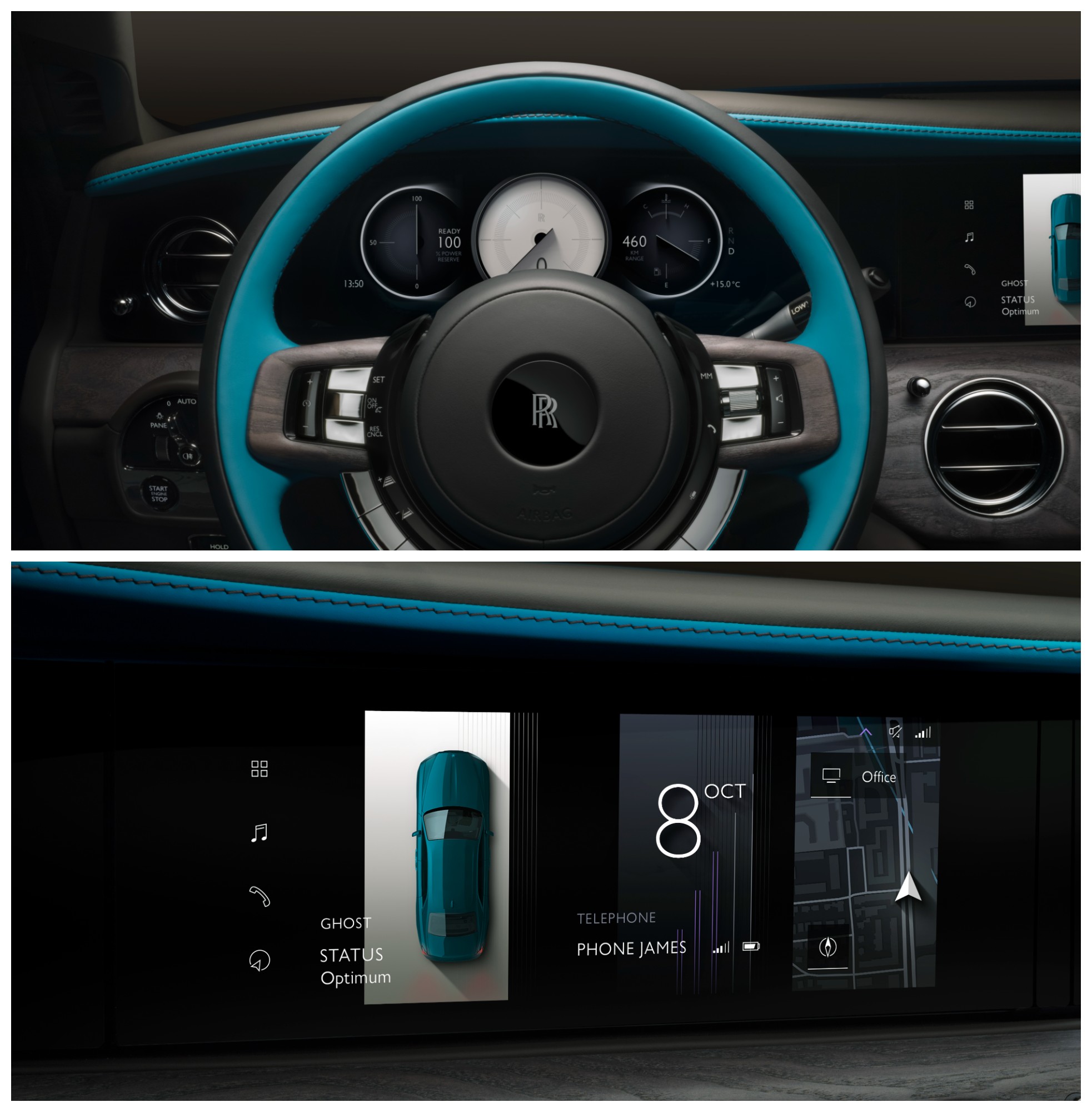 Bên trong chiếc xe Ghost Series II là lời tôn vinh dành cho sự tỉ mỉ của những chuyên gia Rolls-Royce trên cả thế giới kỹ thuật số. Bên dưới tấm kính liền khối mới, Màn hình Thông tin Trung tâm tích hợp hệ điều hành hiện đại của thương hiệu, cho phép khách hàng Bespoke cả màu sắc của các đồng hồ hiển thị thông số nhằm mang đến vẻ đẹp hài hòa hơn cho không gian nội thất. Hệ điều hành SPIRIT tích hợp Whispers, ứng dụng thiết kế riêng cho khách hàng của Rolls-Royce. Thông qua ứng dụng này, chủ nhân có thể gửi trực tiếp điểm đến từ điện thoại vào chiếc xe của họ, xem vị trí của chiếc xe và quản lý khóa xe từ xa, cho phép khách hàng trải nghiệm một phong cách sống hiện đại và linh hoạt hơn.