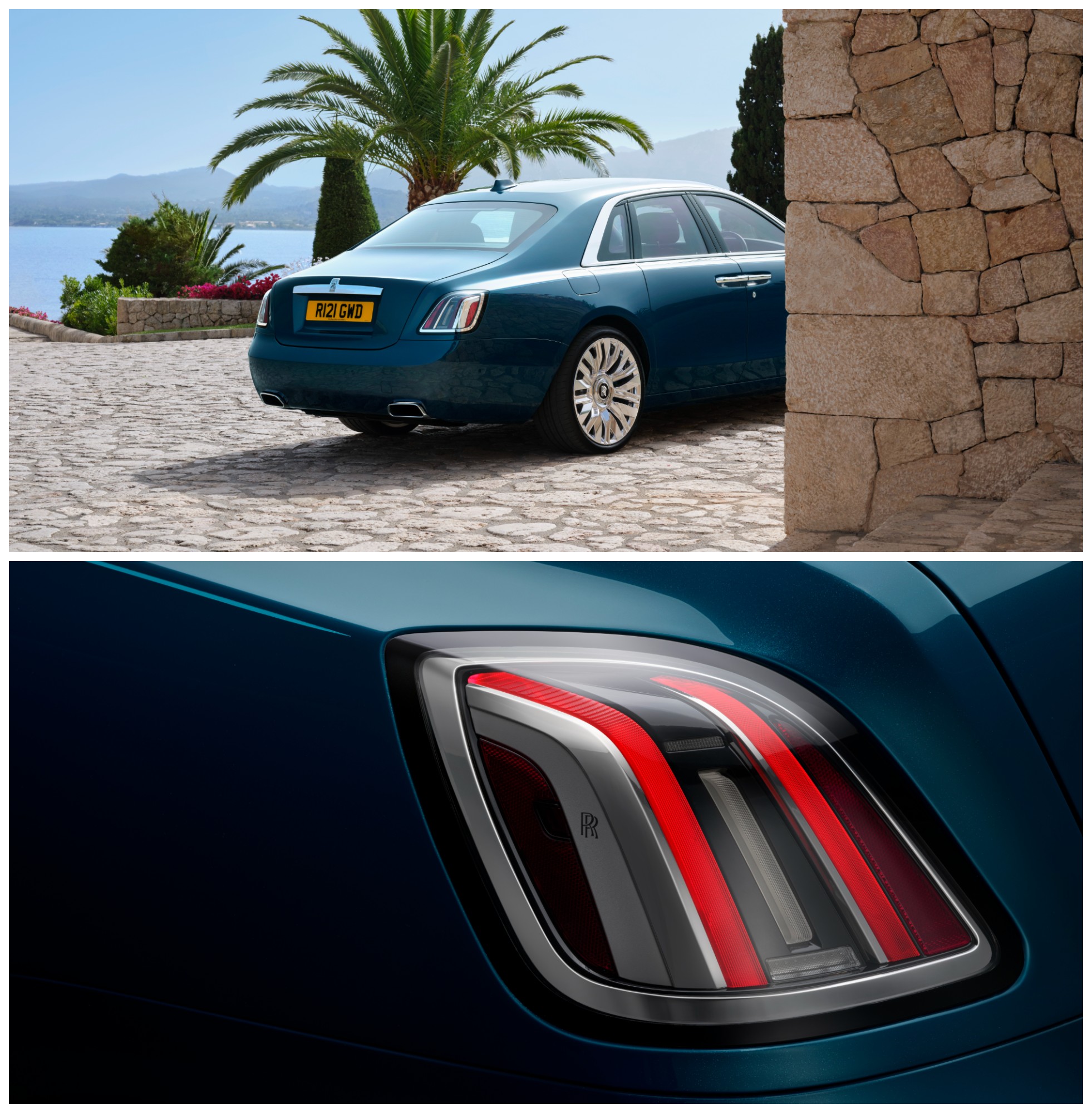 Nhìn từ phía sau, Ghost Series II sở hữu cấu hình đèn hậu mới, bao gồm hai dải đèn LED dọc bố trí hài hòa hơn với các bề mặt xung quanh. Thiết kế này được lấy cảm hứng từ Spectre bên cạnh các chi tiết mạ crôm cong mềm mại cùng biểu tượng chữ ‘R’ đôi được khắc tinh tế.