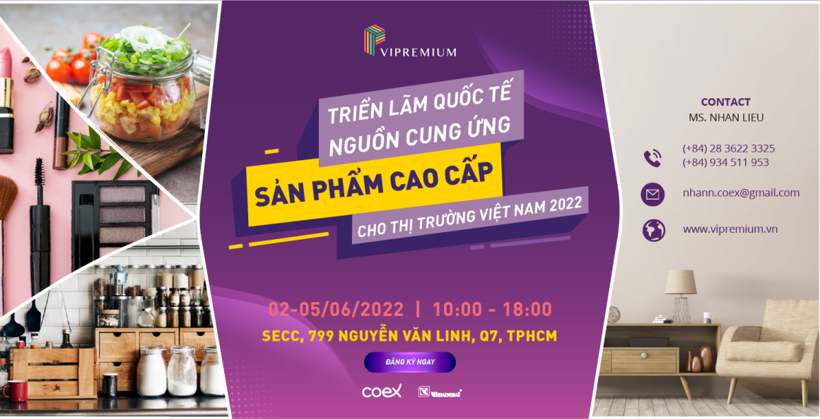 Triển lãm quốc tế nguồn cung ứng sản phẩm cao cấp tại thị trường Việt Nam – VIPREMIUM 2022 sẽ khai mạc vào sáng ngày 2/6/2022 tại Trung tâm Triển lãm và Hội nghị Sài Gòn – SECC 799 Nguyễn Văn Linh, Quận 7, TP.HCM. Triển lãm mở cửa miễn phí 10h-17h mỗi ngày từ 2-5/6/2022.