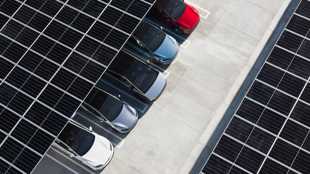Mái che năng lượng mặt trời, giúp giảm khí CO₂ hiệu quả.