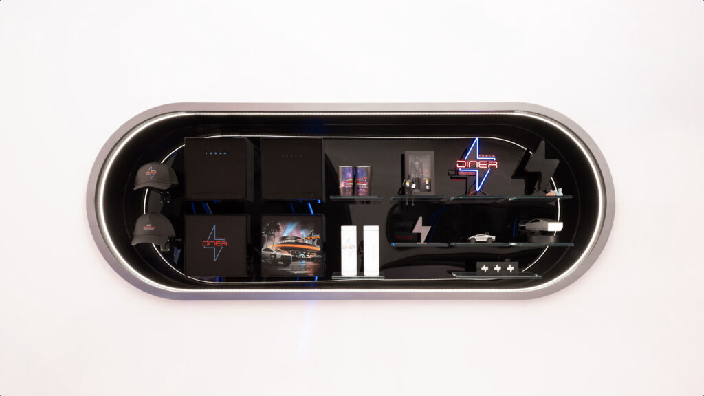Bên cạnh đó, khách còn có thể mua sắm các sản phẩm giới hạn như áo thun retro, kẹo Tesla, mũ trucker Tesla Restaurant, và mô hình Tesla Bot tỉ lệ 1:10 với hơn 40 chi tiết chuyển động.