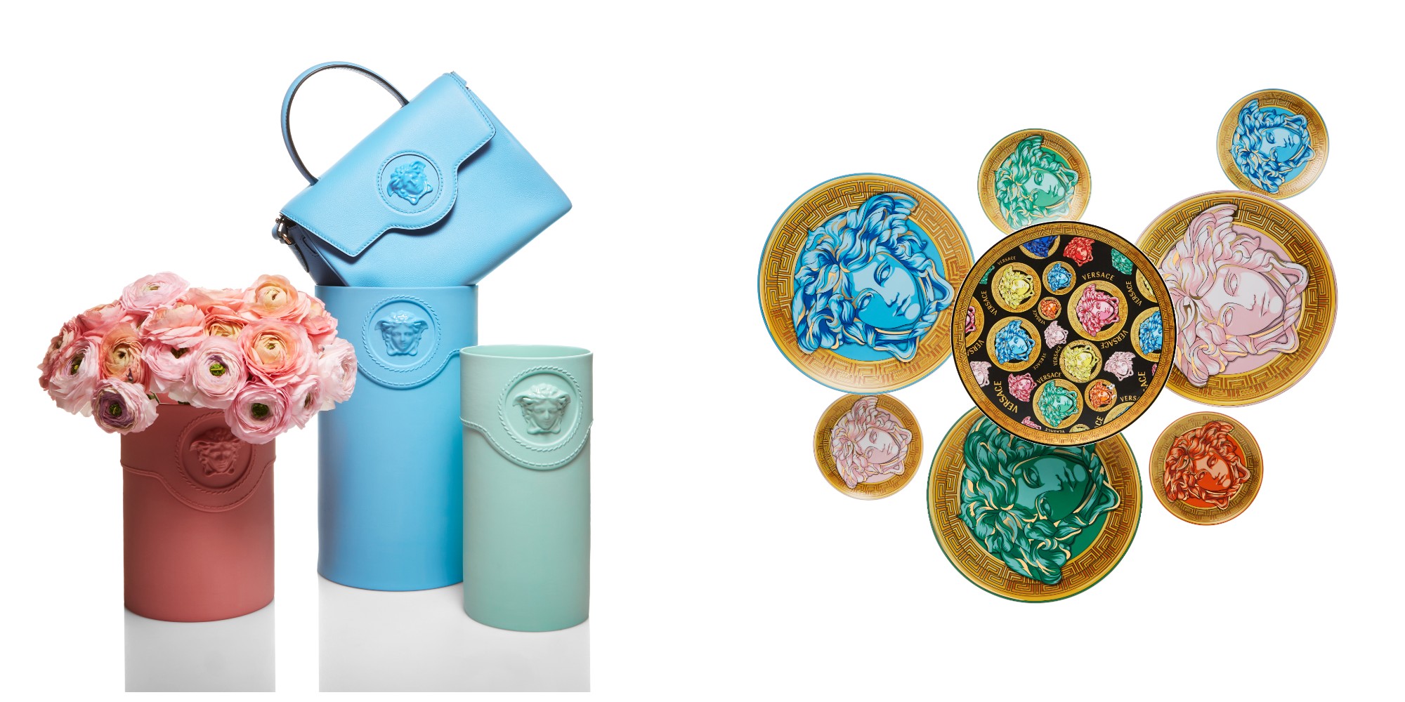 Một bộ sưu tập bàn ăn sẽ chẳng thể trọn vẹn nếu thiếu đi đĩa, cốc và bát. Vì thế, các dòng Green Coin, Blue Coin, Pink Coin và Orange Coin là sự bổ sung hoàn hảo cho Versace Novelties. Bên cạnh đó là bình pha cà phê, ấm trà, máy đánh kem và cả bát chứa đường. Ngoài ra, các mẫu Medusa Amplified có hình ảnh Medusa được mô phỏng như biểu tượng âm nhạc lấy cảm hứng từ tình yêu dành cho các tuyệt tác âm thanh mà Donatella Versace luôn tôn thờ. Màu sắc đậm tươi mang cảm hứng mùa xuân cùng họa tiết liền kề sắc sảo cũng được tận dụng trên nhiều sản phẩm đa dạng như gạt tàn, đĩa và các loại nến thơm.
