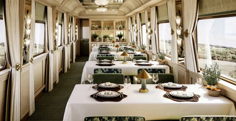 Huyền thoại của các chuyến tàu xa xỉ, Venice Simplon-Orient-Express nối Paris đến Tuscany nay có thêm điểm dừng tại điền trang Castello di Casole. Từ cabin Art Deco đến bữa tối do Chef Jean Imbert thiết kế, mọi chi tiết đều đậm chất lãng mạn. Sau hành trình, du khách khám phá Siena qua các tour riêng, thưởng thức cocktail trong dinh thự cổ kính và những liệu pháp chăm sóc sức khỏe và tinh thần đầy cảm hứng.