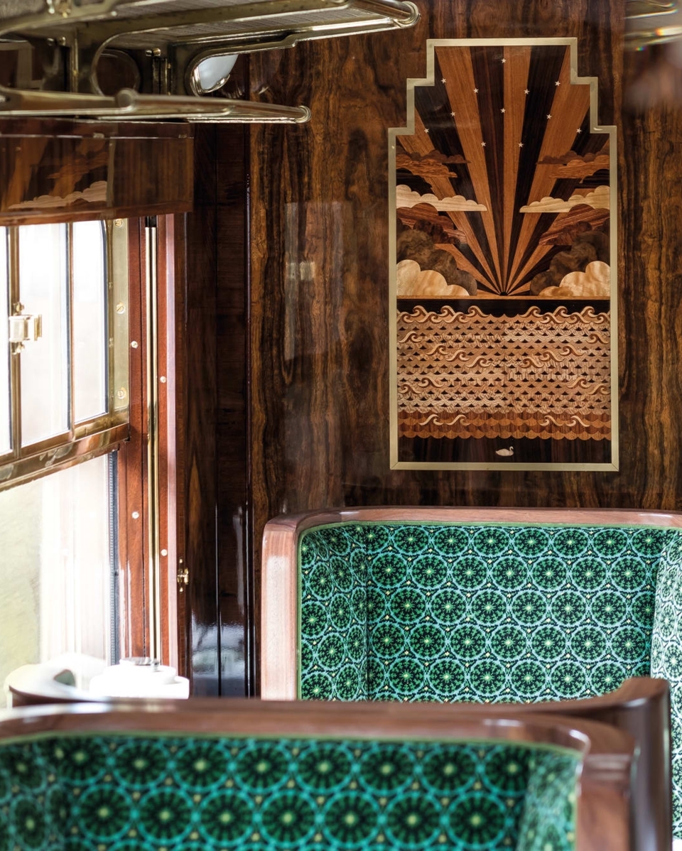 ự hợp tác thiết kế điện ảnh độc quyền này mang đến cho khách tham quan trải nghiệm tựa như đang trở về thời đại hoàng kim của ngành du lịch nước Anh với cách tái hiện đầy duy mỹ dưới góc nhìn độc đáo của Wes Anderson. Bước lên toa tàu đặc biệt này, du khách sẽ tưởng chừng như mình đang lại vào thế giới của những bộ phim sống động. Toàn bộ không gian đều in đậm dấu ấn đặc trưng của Wes Anderson: từ những đường nét thiết kế đối xứng, sự kết hợp màu sắc cổ điển của trần nhà màu hồng phấn và ghế bọc màu xanh lá cây, cho đến những chi tiết trang trí nghệ thuật của toa tàu những năm 1950 đều được giữ lại trọn vẹn. Để tăng cảm giác hoài niệm, nhà đạo diễn người Mỹ còn sử dụng dày đặc những đường nét đậm và sắc nét trong trang trí cùng chất liệu gỗ dùng để ốp tường cũng như hoa văn vân gỗ chìm phức tạp.